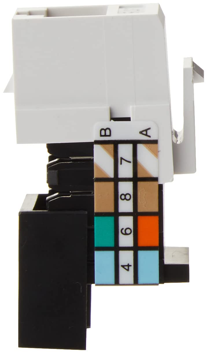 Leviton's Category 5 Connector is designed for use with all QuickPort compatible products. 8-position, 8-conductor Category 5 QuickPort Snap-In Connectors feature dual-color-coded wiring labels with both T568A and T568B wiring patterns, for dual flexibility in a single connector, as well as fast, accurate 110 termination of station wiring. Category 5 QuickPort connector, CAT 5, White