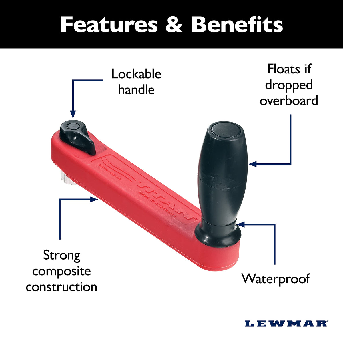 Lewmar 10'' Single Grip Winch Handle, Locking, Red With Black Grip - Ultra-Light, Locking Winch Handle With Comfortable Grip, Wo,WBIASB00OAFI4VI