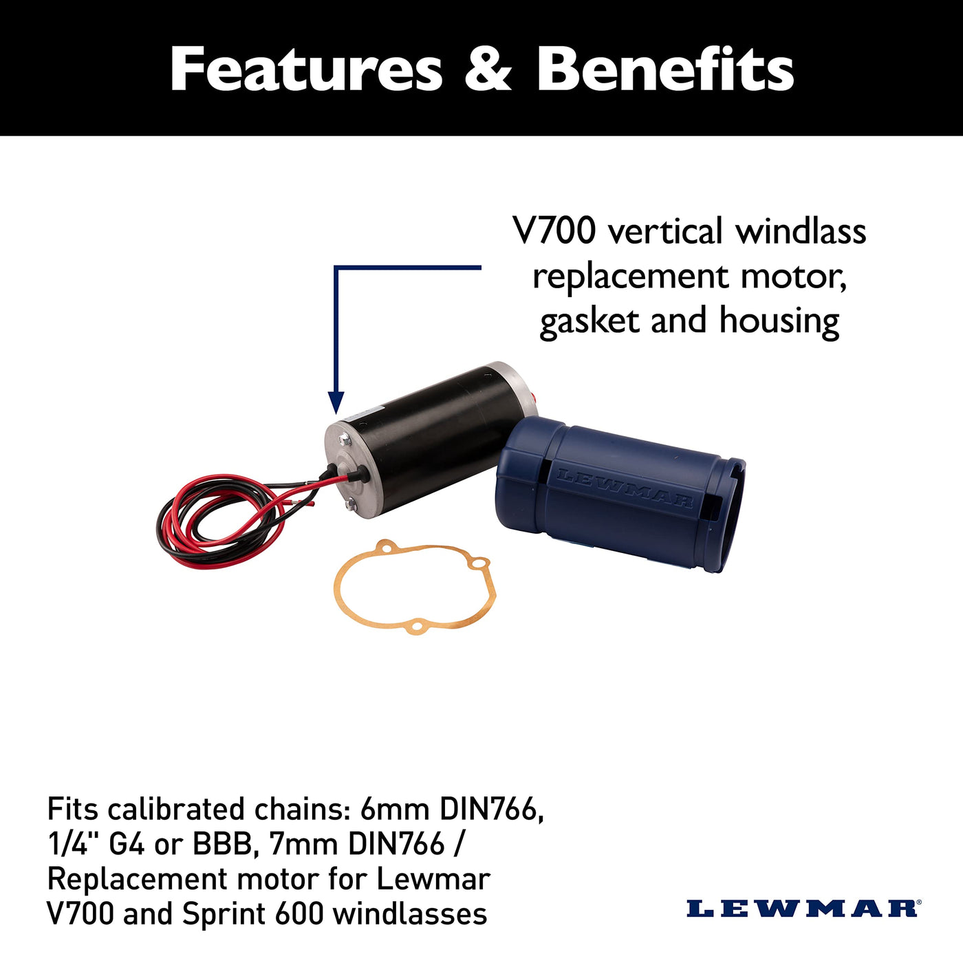 Lewmar Motor Kit, Fits Calibrated Chains: 6Mm Din766, 1/4'' G4 Or Bbb, 7Mm Din766 / Replacement Motor For V700/Sprint 600 Windla,WBAUVB08RSPLDZ7