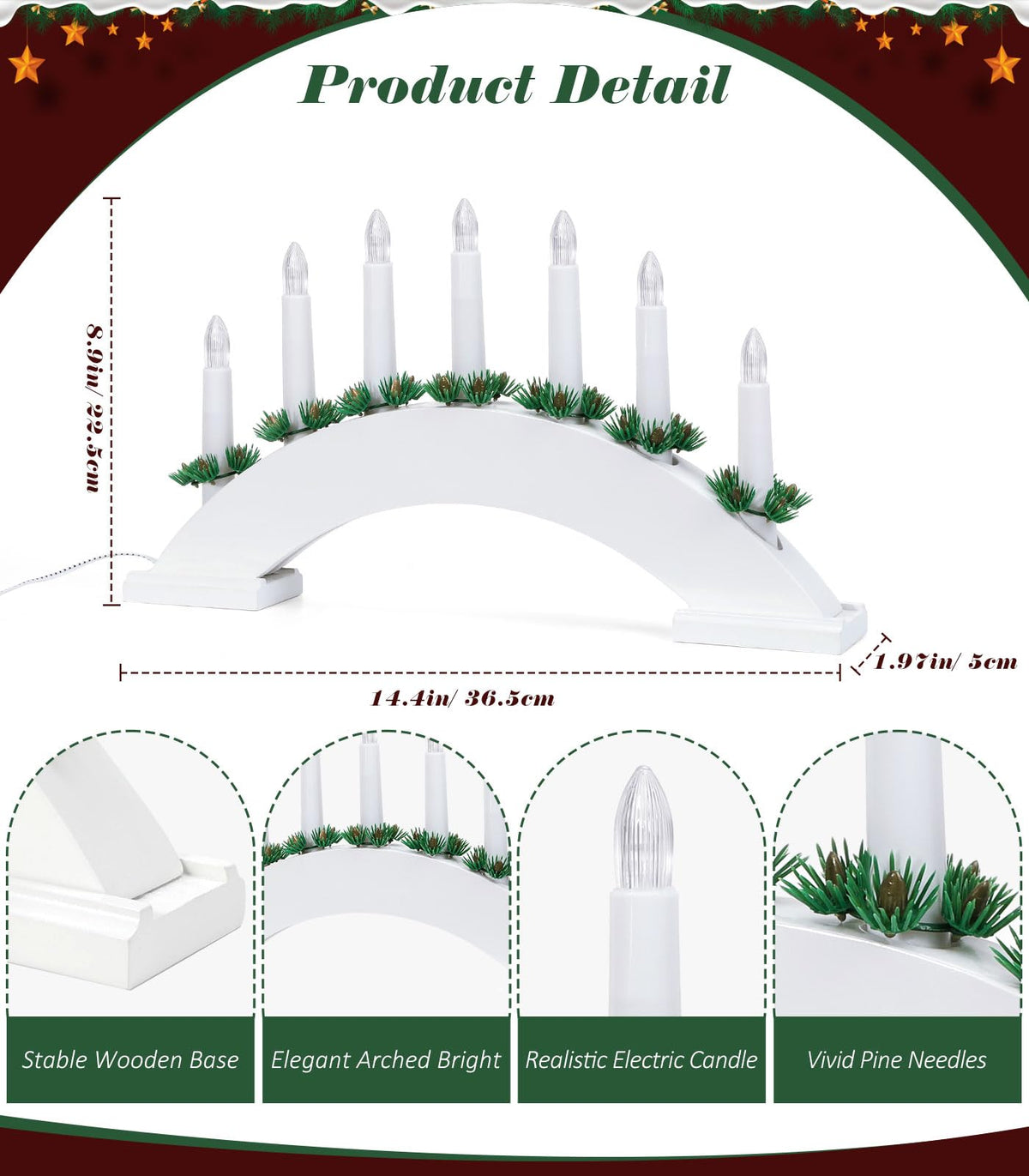 Lewondr Christmas Swedish Candelabra, 7 Taper Flameless Candles With Usb Powered, Christmas Window Candle Light With Pine Needle