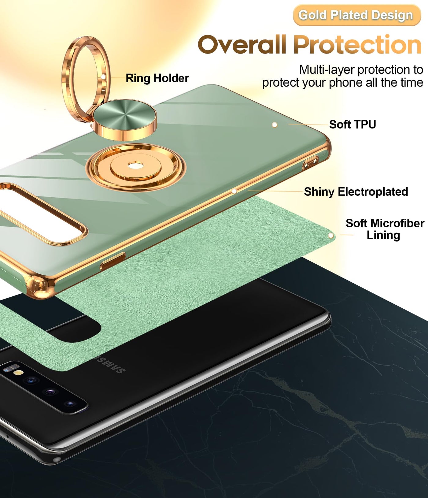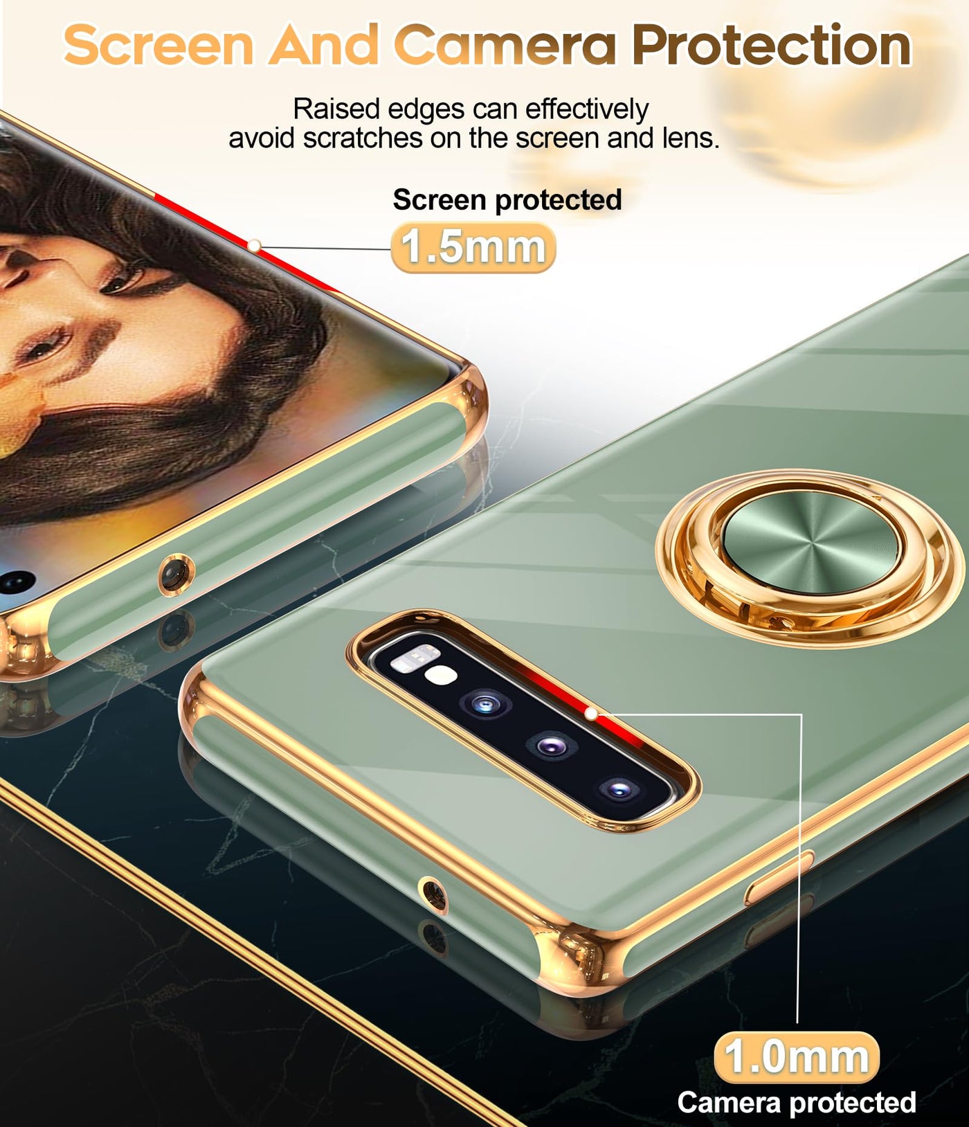 Compatible Model: Only Compatible With Samsung Galaxy S10 | Rose Gold Plated Design: The Edge Of The Shell Bumper And The Edge Of The Camera Are Rose Gold Plated, Making The Phone Full Of Luxury, Stylish And Timeless. Slim And Lightweight, Not Bulky, And Easy To Hold. Not Compatible With Wireless Charging | Kickstand Design: The 360