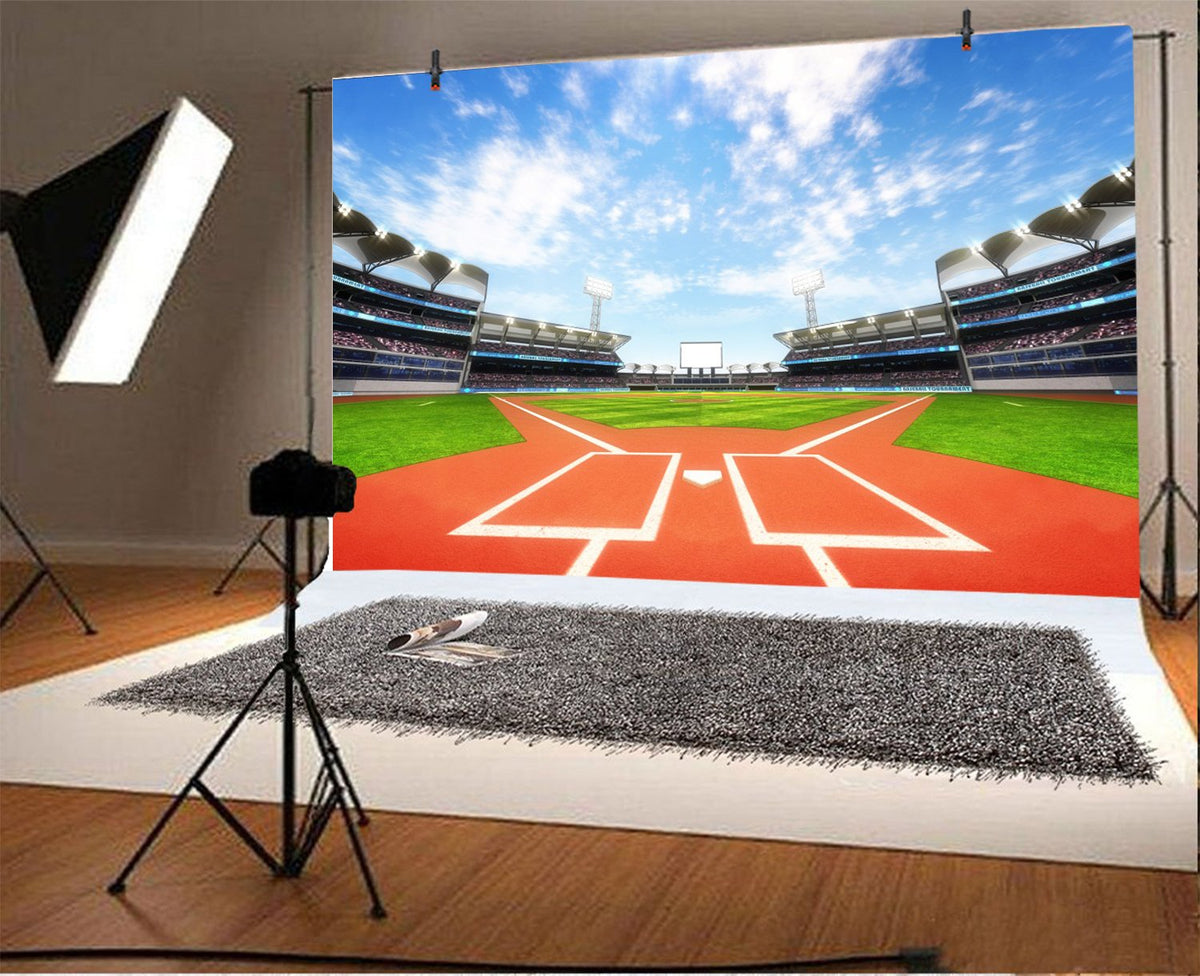 Lfeey 7X5Ft Outdoor Sports Theme Backdrop For Photoshoot Baseball Stadium Pitch Green Grass Field Photography Background Vinyl B