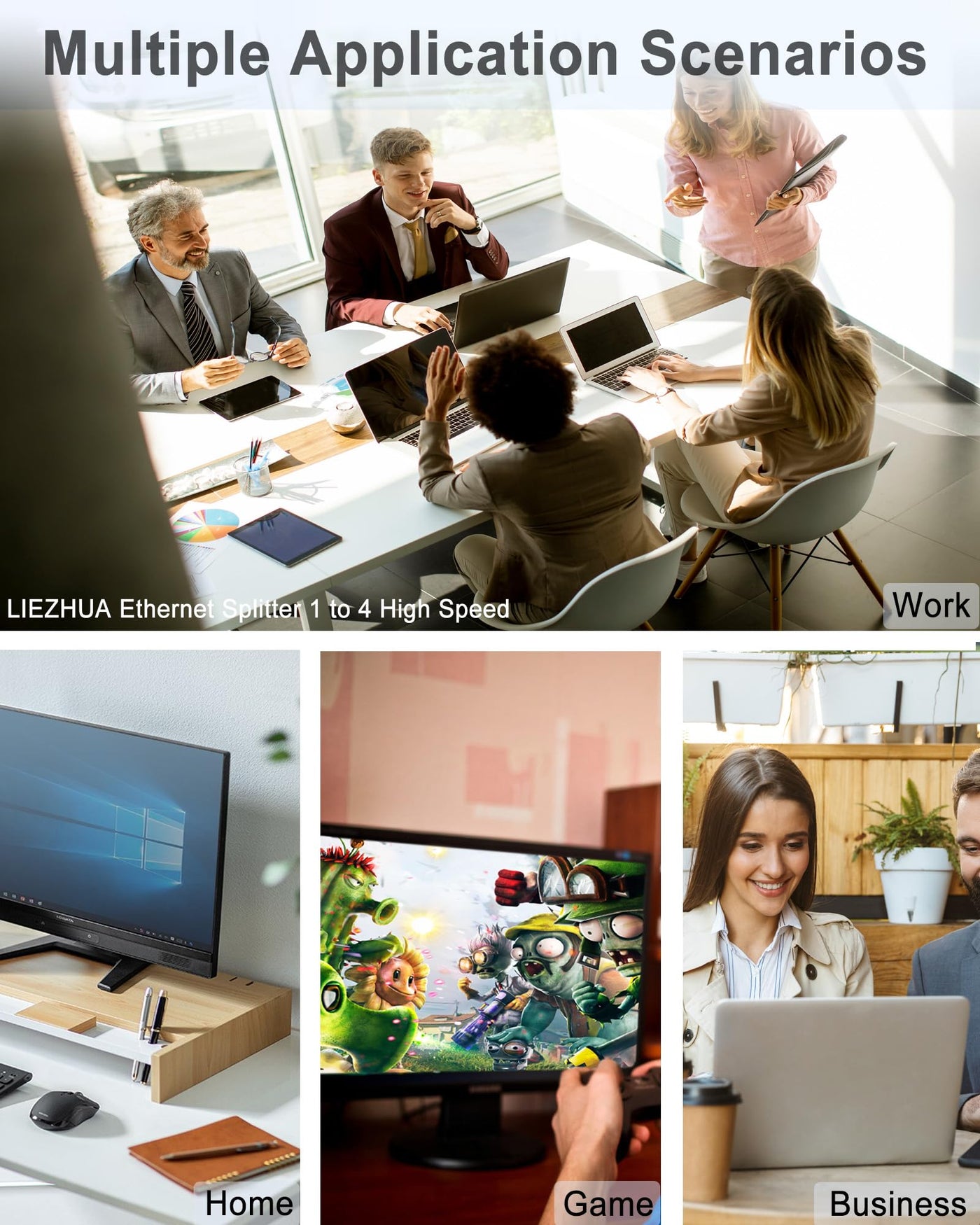 Liezhua Rj45 Ethernet Splitter 1 To 4 Out With Usb Power Cable Liezhua Gigabit Rj45 Ethernet Splitter 1 To 4 High Speed For Routers, Network Switches, Cat8, Cat7, Cat6, Cat5 And Cat5E, Etc. Liezhua Ethernet Splitter 1 To 4 Are Plug-And-Play, Compatible With Most Network Ethernet Cables. Package Includes: 1X Gigabit Network Splitter 1 To 4 1X 31.5 Inches Usb Type C Cable 1X Manual Output Ports The Rj45 Ethernet Splitter 1 To 4 Is Compatible With A Variety Of Devices Such As Adsl, Hubs, Switches, Tvs, Set-Top Boxes, Routers, Wireless Devices, Computers And More.