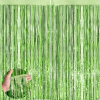 Light Green Metallic Tinsel Foil Fringe Curtains, 2 Pack 3.3X8.3 Feet Party Streamer For Birthday Party Decorations, Halloween D