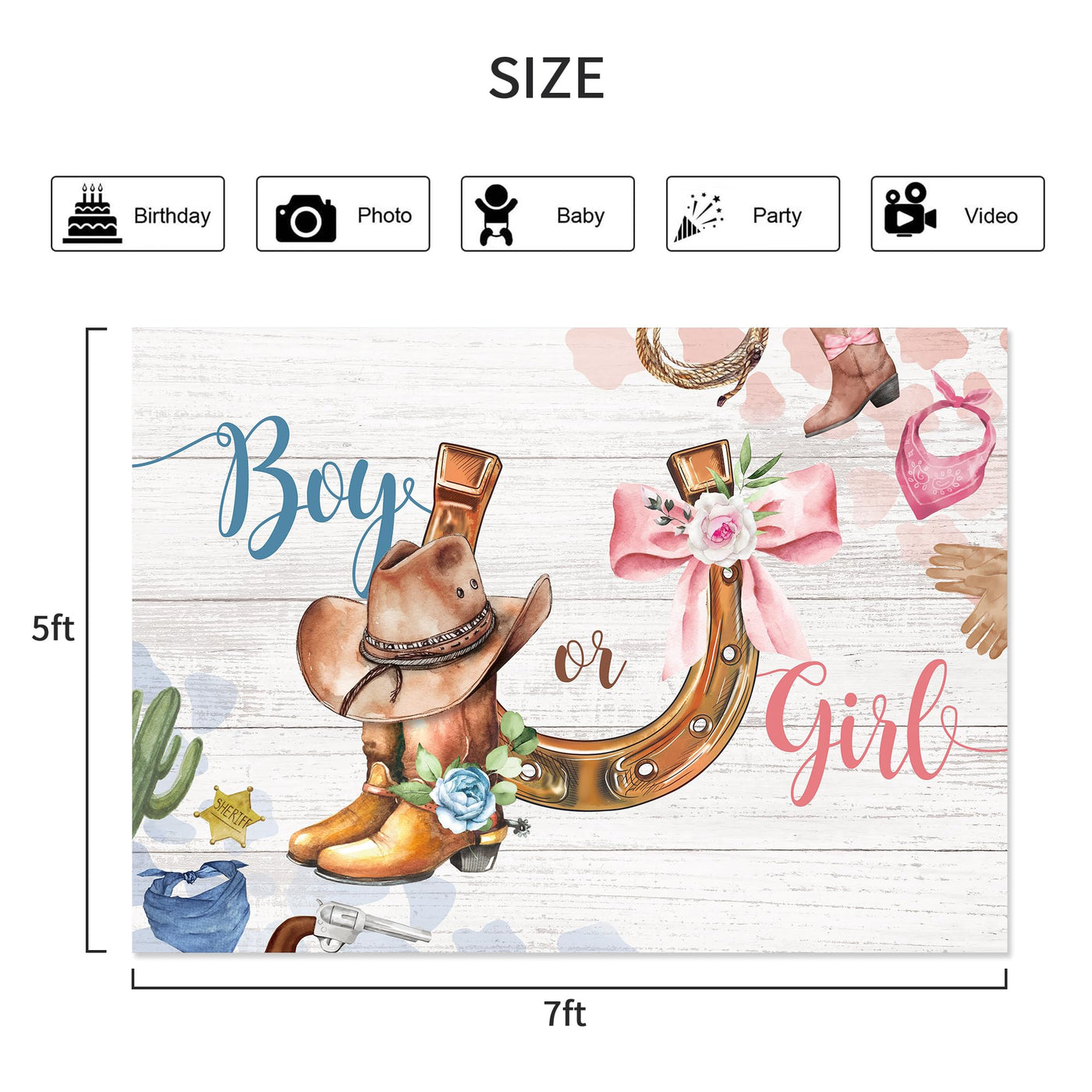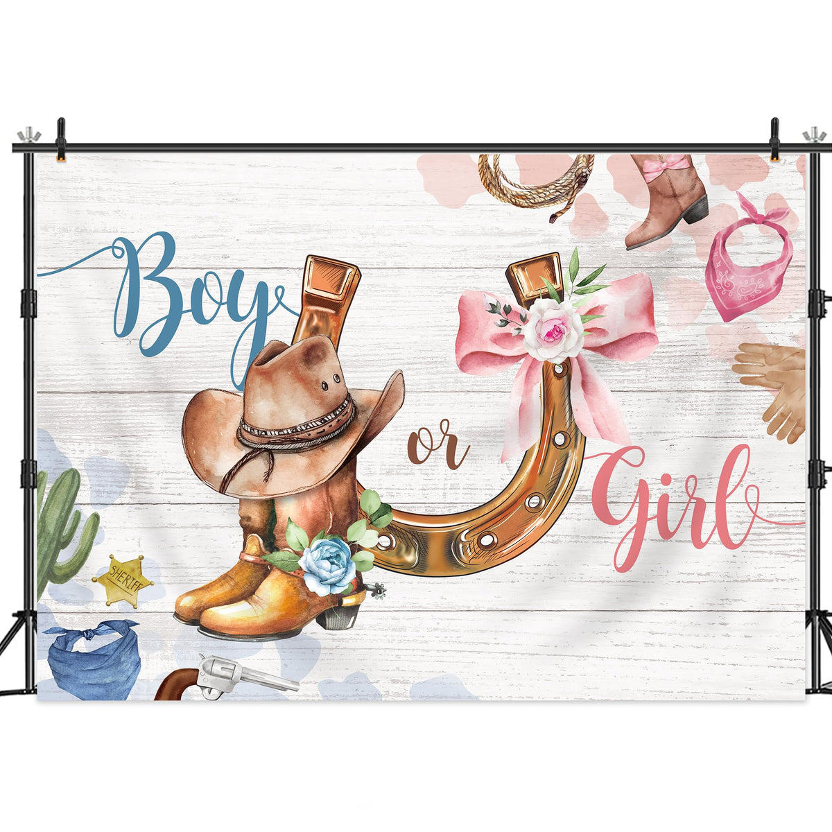 Lightinhome Western Gender Reveal Backdrop 7Wx5H Feet Blue Pink Boots Hat Country Wild West Baby Shower Cowboy Or Cowgirl Photog
