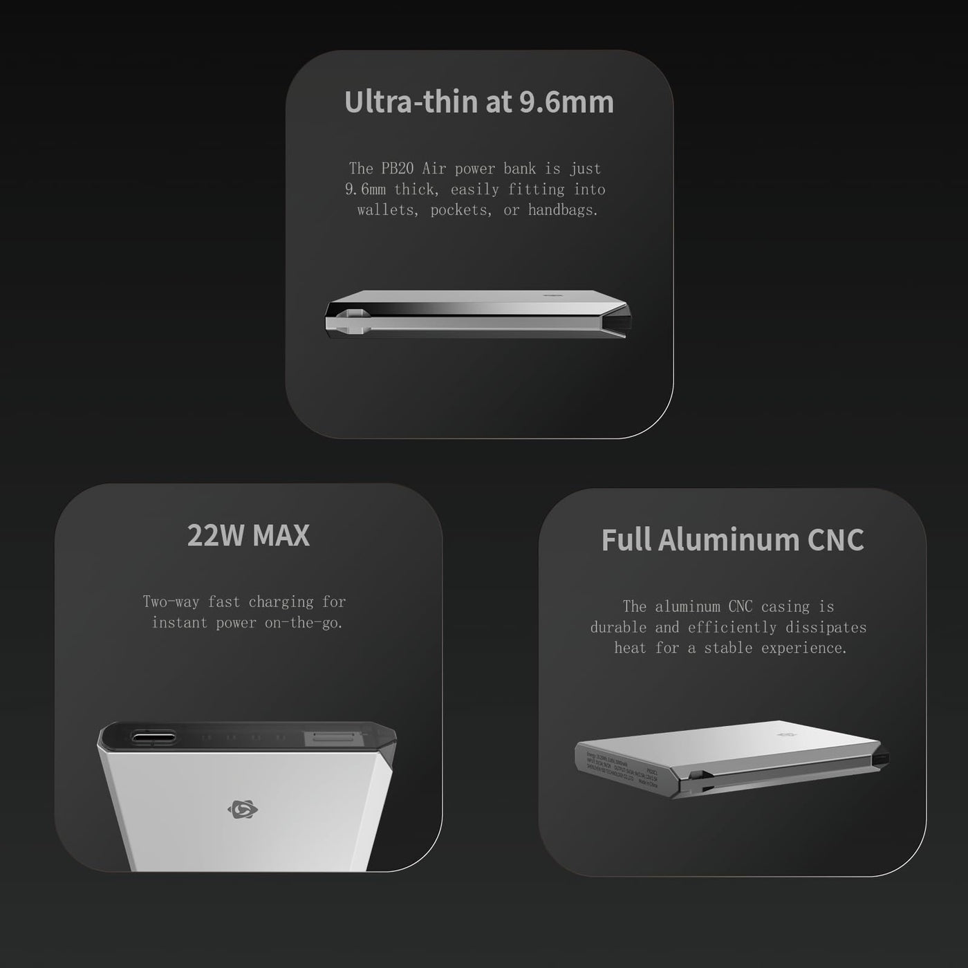 Limeta Portable Charger,Ultra Slim 22W 5000Mah Fast Charging Power Bank With 65W Usb-C Cable Lanyard/App Control,Travel/Camping