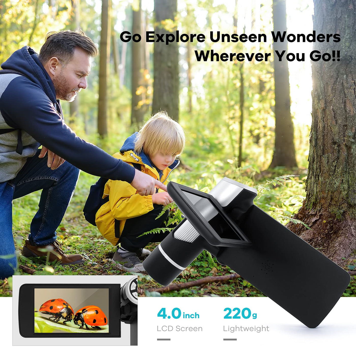 Q: Is the 4" LCD screen of this microscope easy to use for kids?A: Yes, the 4" LCD screen provides a clear and user-friendly interface, making it suitable for kids aged 8-12 to easily view and explore their findings.