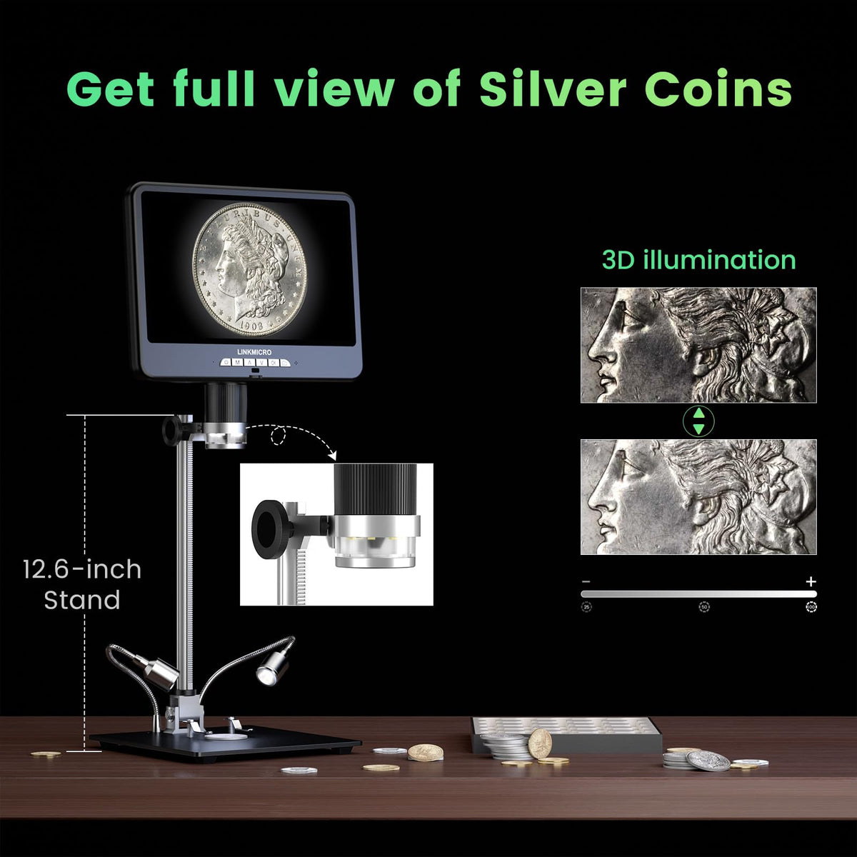 Q: What accessories come with the LINKMICRO LM210S?A: The LINKMICRO LM210S comes with a taller 12.6-inch metal stand that provides higher working distances, making it easier to observe larger objects. Additionally, it includes a 64GB memory card for storing high-resolution images and videos.
