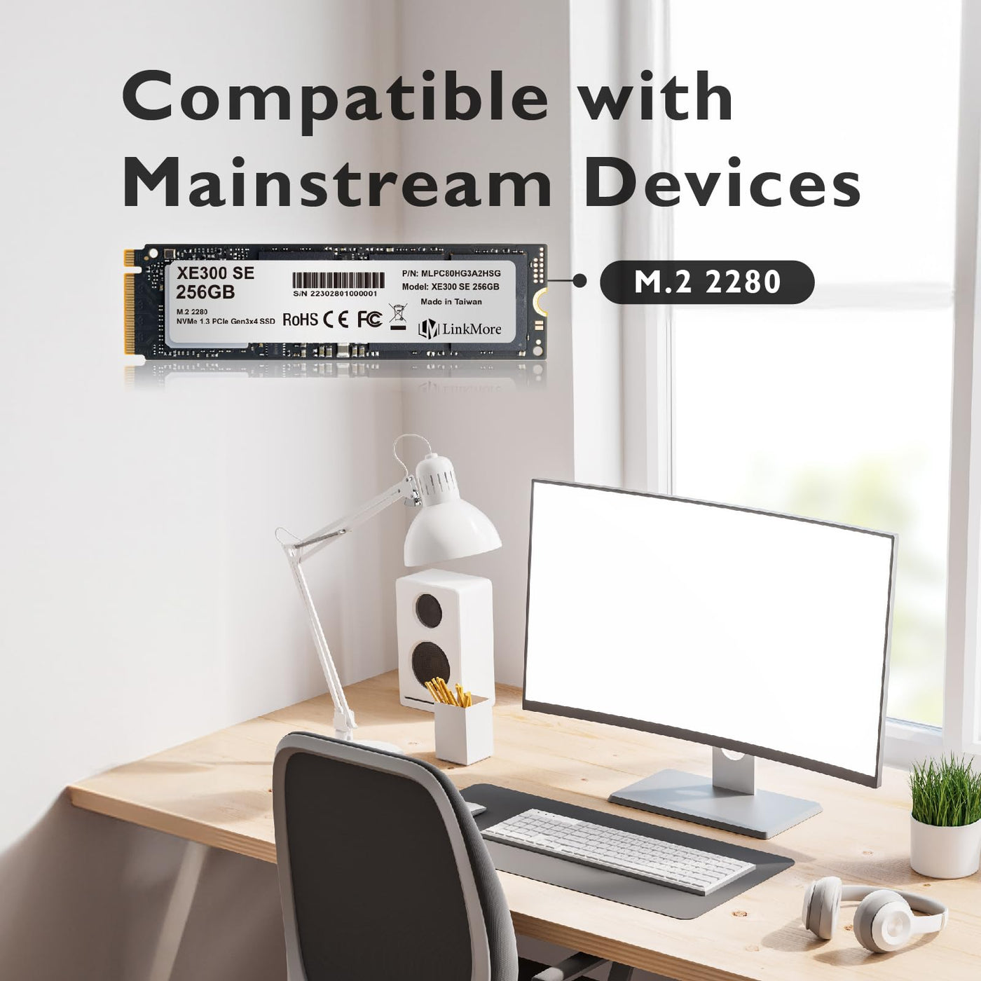 Linkmore Xe300 Se 256Gb Pcie Gen3 Nvme M.2 2280 Internal Solid State Drive, Gen3.0X4 Read Speed Up To 2100Mb/S, Write Speed Up T