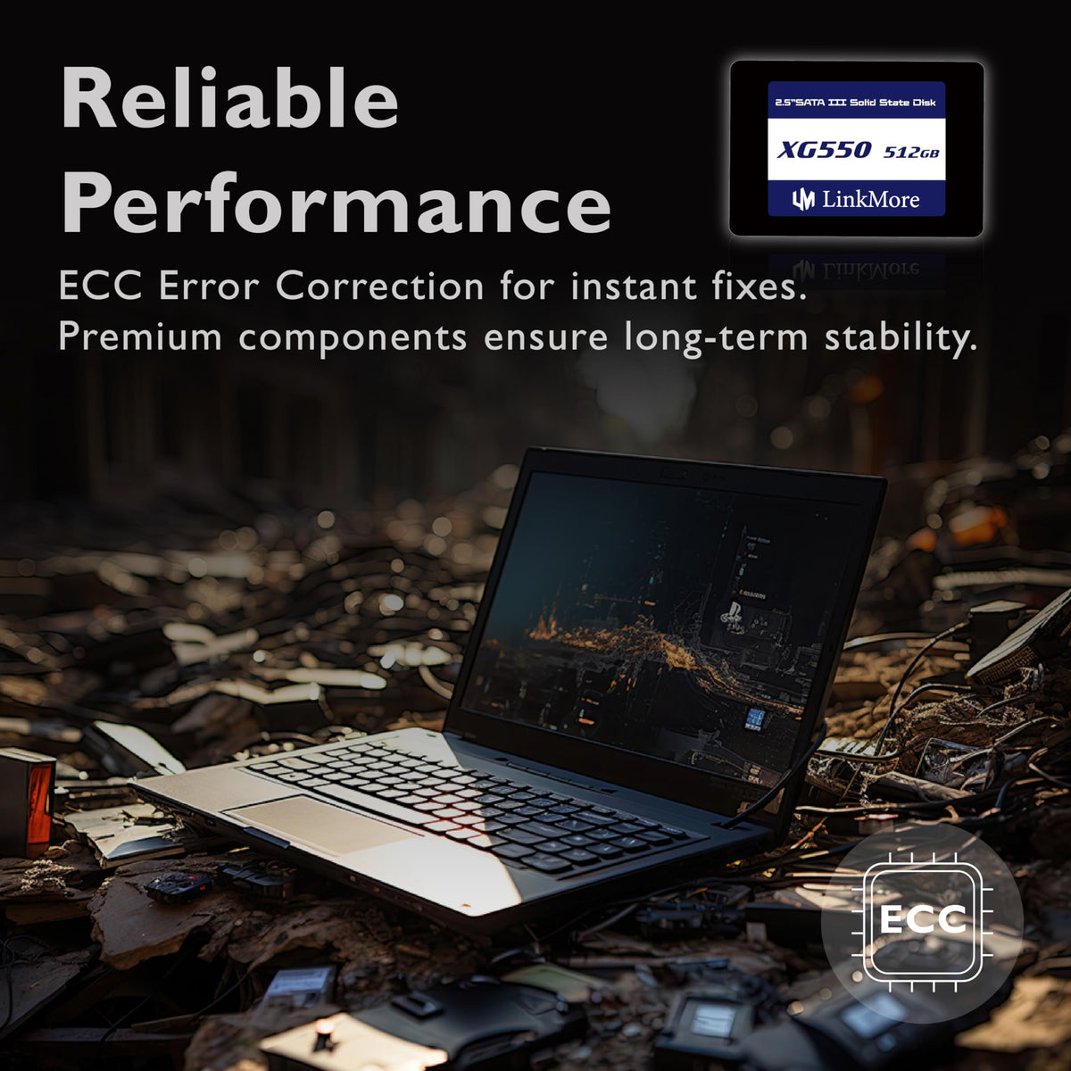 Linkmore Xg550 512Gb 2.5'' Sata Iii (6Gb/S) Internal Ssd, Solid State Drive, Read Speed Up To 540Mb/S, 2.5 Inch For Laptop And P