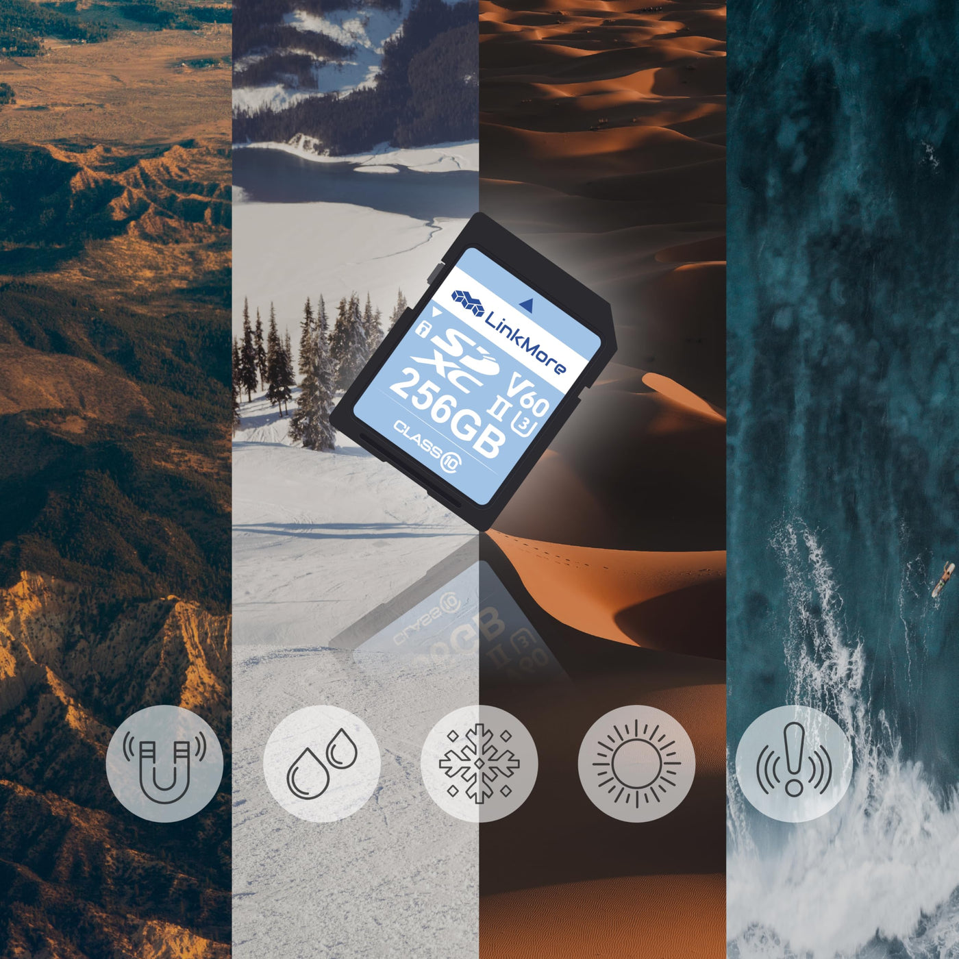 Linkmore Xv26 256Gb Sdxc Uhs Ii Card Uhs Ii Sd Card, C10, U3, V60, Sd Card For Digital Camera, Drone Support 4K 8K Video, Camera