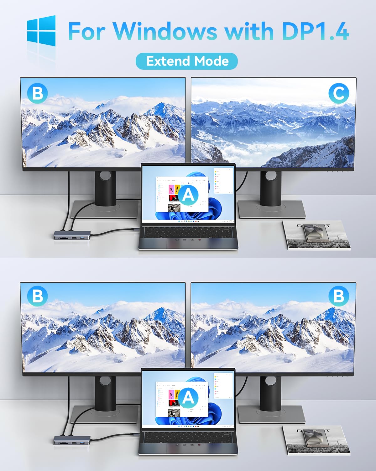 Dual 4K Hdmi Ports. This Usb C Hub Dual Hdmi Allows Extending Display On Large Monitors With A Crystal 4K Ultra-High Definition. Optimize Your Work Zone At Home Or Your Office With This Multi-Port Docking Station. With This Usb C To Dual Hdmi Hub Each Type Of Connection Become Easier! High-Speed Gigabit Ethernet. This Docking Station With Ethernet Supports 10/100/1000Mbps Full Speeds Gigabit Ethernet. No Need To Waste Time Waiting For The Images To Load, Flash Sites To Load, Or Videos To Buffer. Lionwei Usb-C Ethernet Adapter Will Take Your Internet Surfing Speed Up To The Next Level. 2 Usb 3.0 Ports +1 Usb 2.0 Port. 2 X Usb 3.0 Ports For Accessories (An External Hard Drive Or Usb Peripherals Etc.,). 1 X Usb 2.0 Ports (Great For Wireless Devices: Mouse, Keyboard Or Other Low Rate Devices). 100W Pd Quick Charging. Supporting A Maximum Of 100W Power (Only For Charging), To Charge Your Type-C Laptops At Blazing Fast Speeds. 104Mb/S Sd/Tf Card Reader. Compatible With Sd, Sdhc, Sdxc, Microsd, Microsdhc, Micro Sdxc Cards Are Supported With Up To 104Mb/Sec. Super Fast Read And Write Speed, Let You Get Access Your Files Easily. Sd Card And Micro Sd Can Work Simultaneously. Pocket Size & Sleek Compact. With A Small Size In 4.5 Inch*1.8 Inch Which Is Small Similar To Your Phone. Easy To Set Into Your Laptop Bag Or Pocket. Sleek Aluminum-Alloy Housing And A Space Grey Design Match The Color Of Most Computers