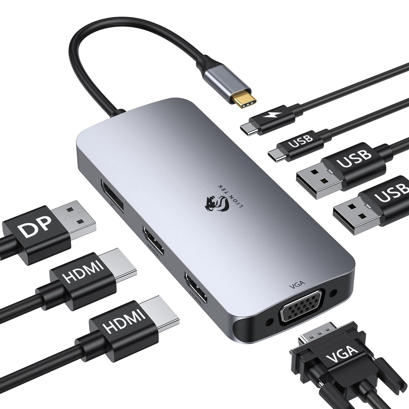Lionwei Usb C Docking Station Dual Monitor Adapter, Laptop Docking Station 3 Monitor With Dual 4K Hdmi, Displayport, Vga, 100W Pd, Usb C 2.0, 2 Usb A 2.0, Usb C Dock For Dell, Lenovo, Hp, Surface