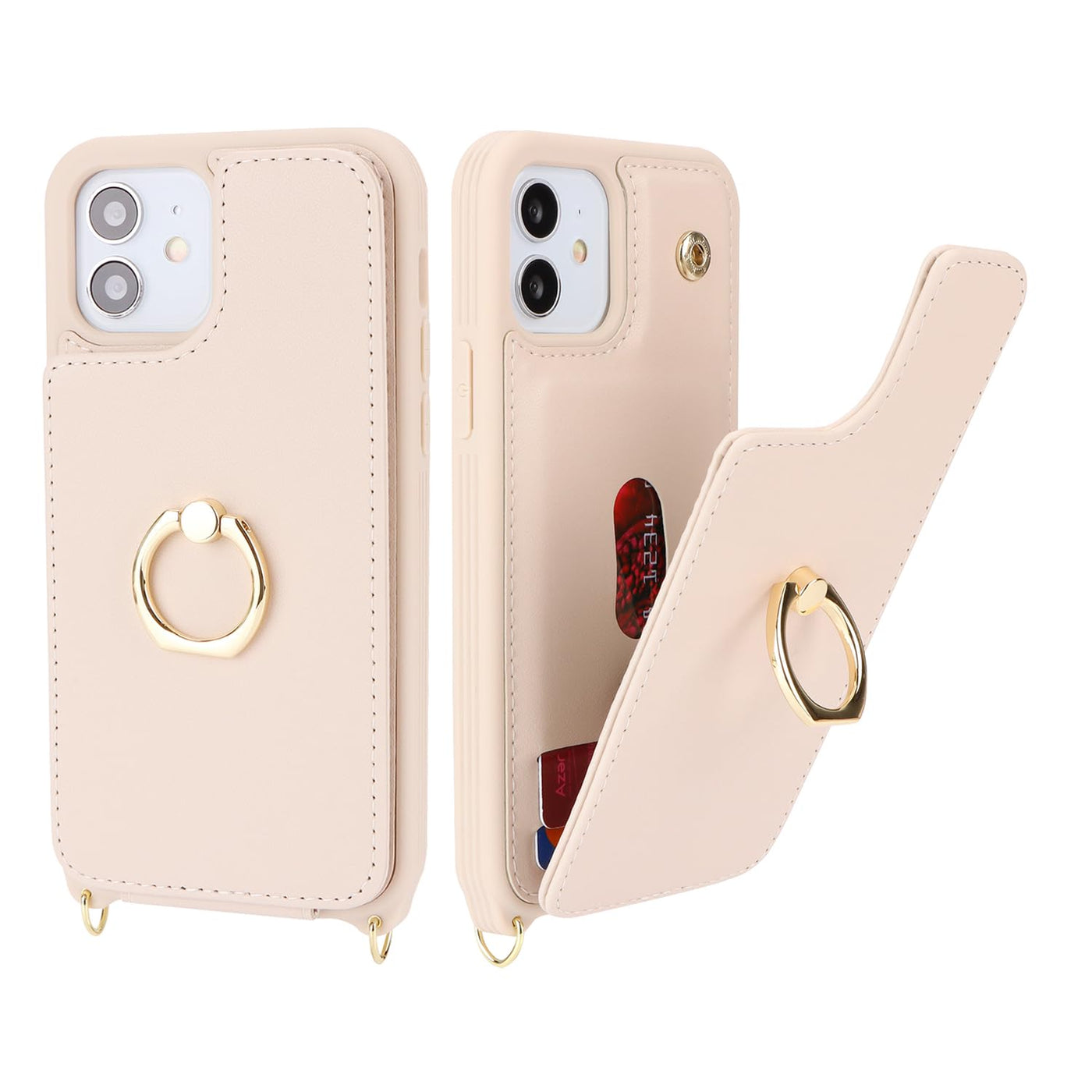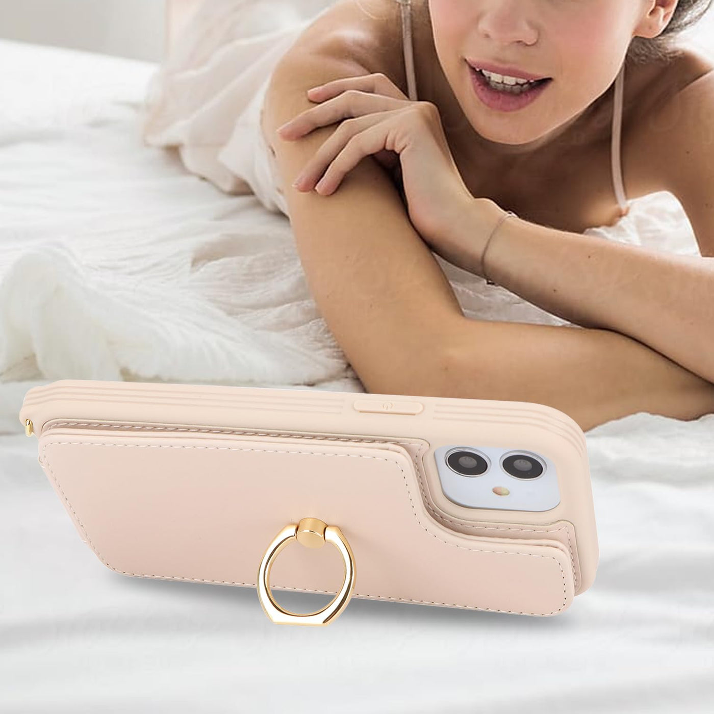 Lipvina For Iphone 11 Phone Case With Card Holder And Strap For Women,Crossbody Lanyard,Kickstand Ring Stand,Snap Clasp,Phone Wa