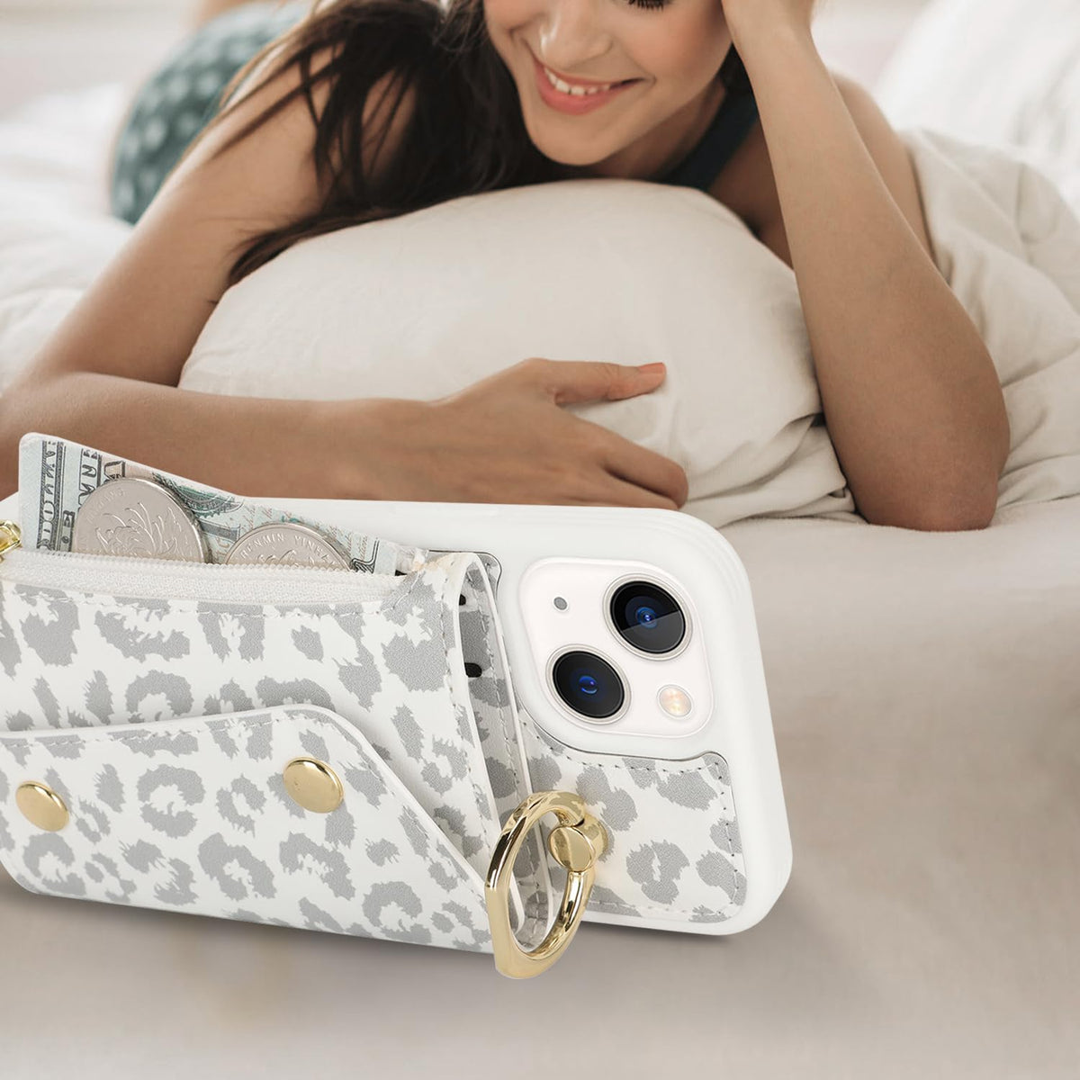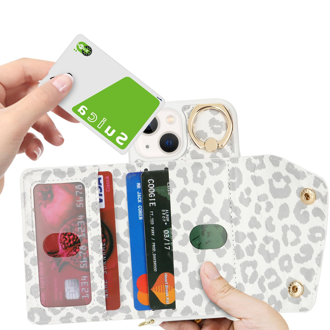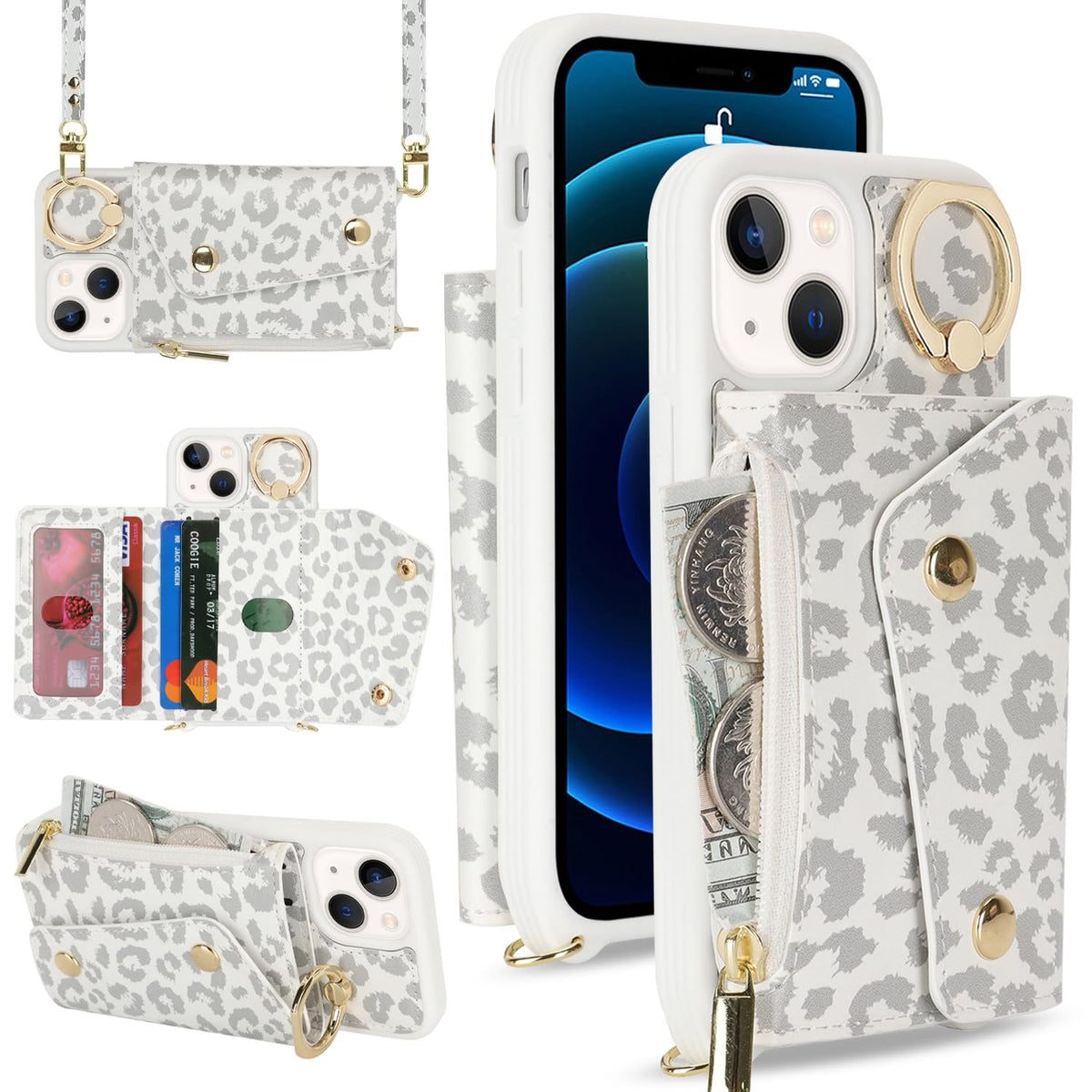 Lipvina For Iphone 13 Mini Case With Card Holder And Strap - Zipper Pocket,Crossbody Lanyard Strap,Credit Card Holder,Stand Ring