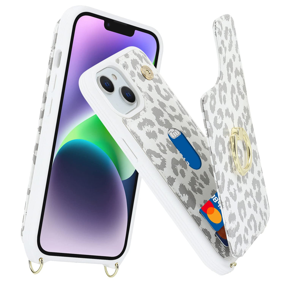 Lipvina For Iphone 14 Plus Case With Card Holder And Strap For Women,Crossbody Lanyard,Stand Ring Kickstand,Snap Clasp,Cute Phon