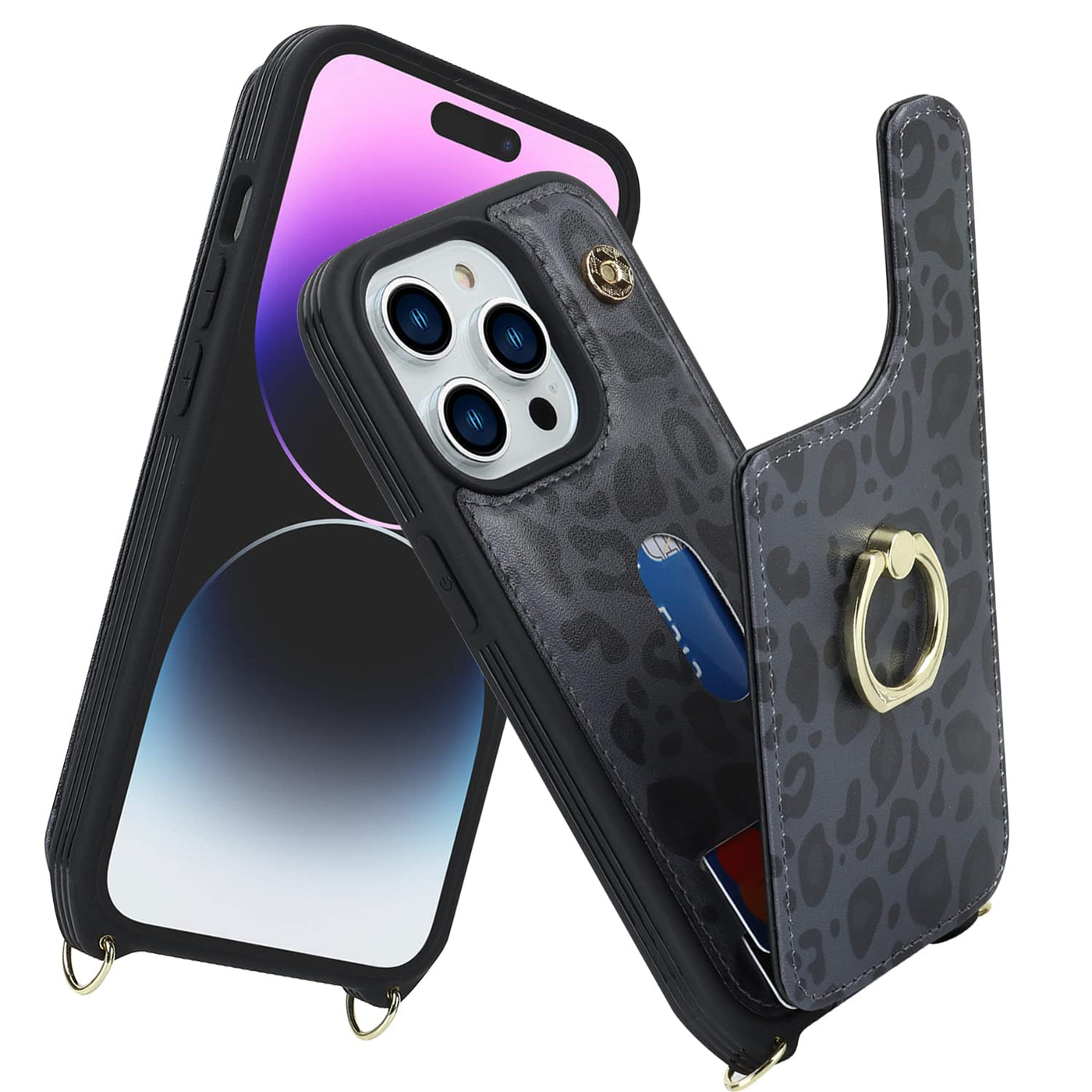 Lipvina For Iphone 14 Pro Case With Card Holder For Women,Phone Case With Strap,Crossbody Lanyard,Ring Stand,Snap Clasp,Cute Wal