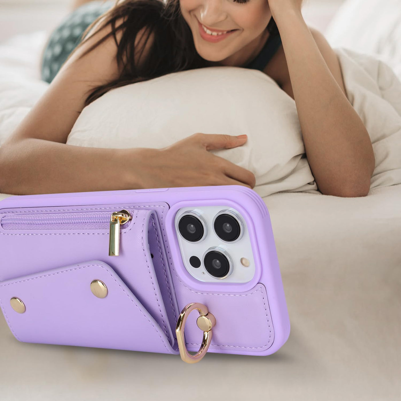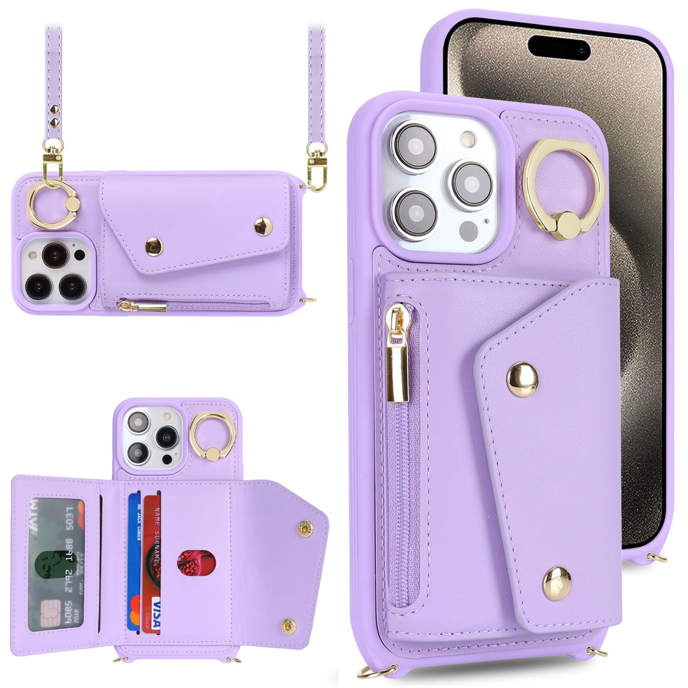 Lipvina For Iphone 15 Pro Max Case With Card Holder And Strap - Zipper Pocket,Crossbody Lanyard Strap,Credit Card Holder,Stand R