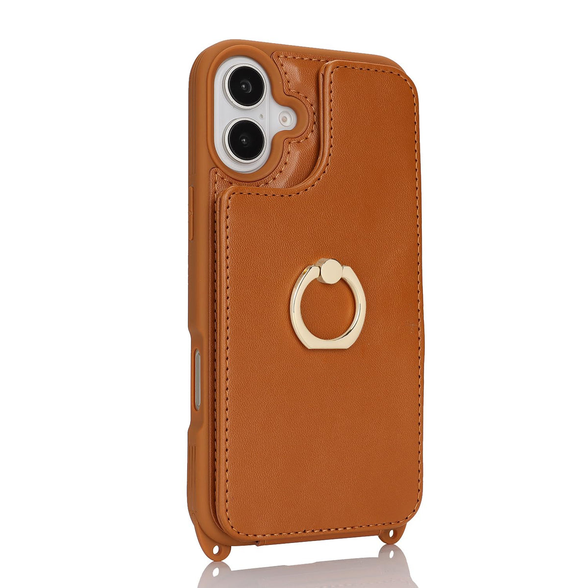 Lipvina For Iphone 16 Case With Card Holder And Strap For Women,Crossbody Lanyard,Ring Stand,Snap Clasp,Cute Phone Wallet Cases