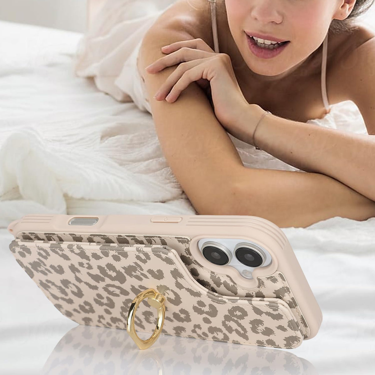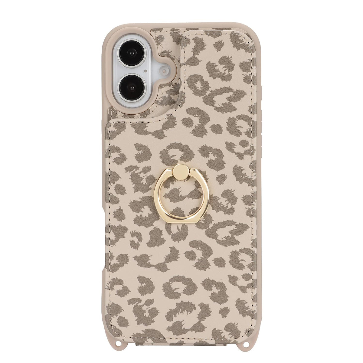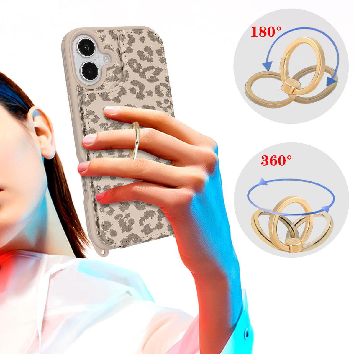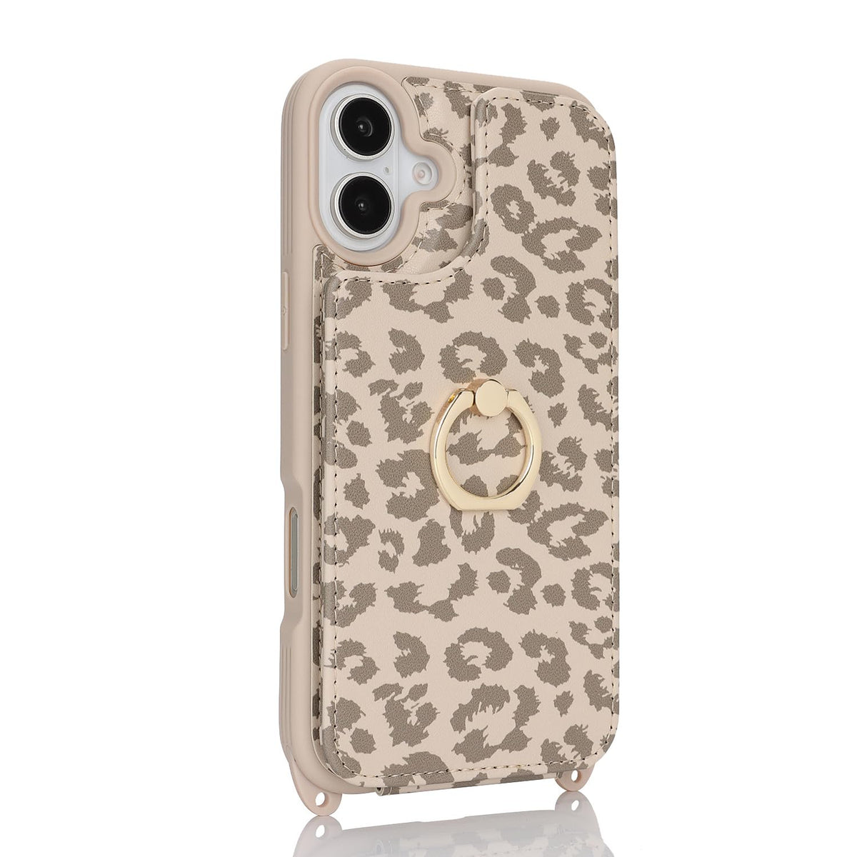 Lipvina For Iphone 16 Plus Case With Card Holder And Strap For Women,Crossbody Lanyard,Ring Stand,Snap Clasp,Cute Phone Wallet C
