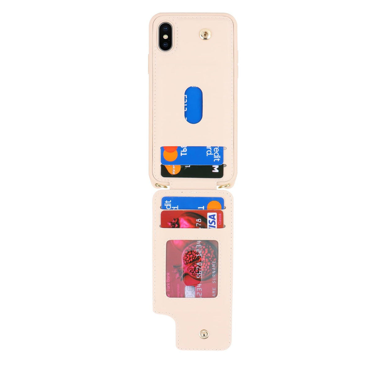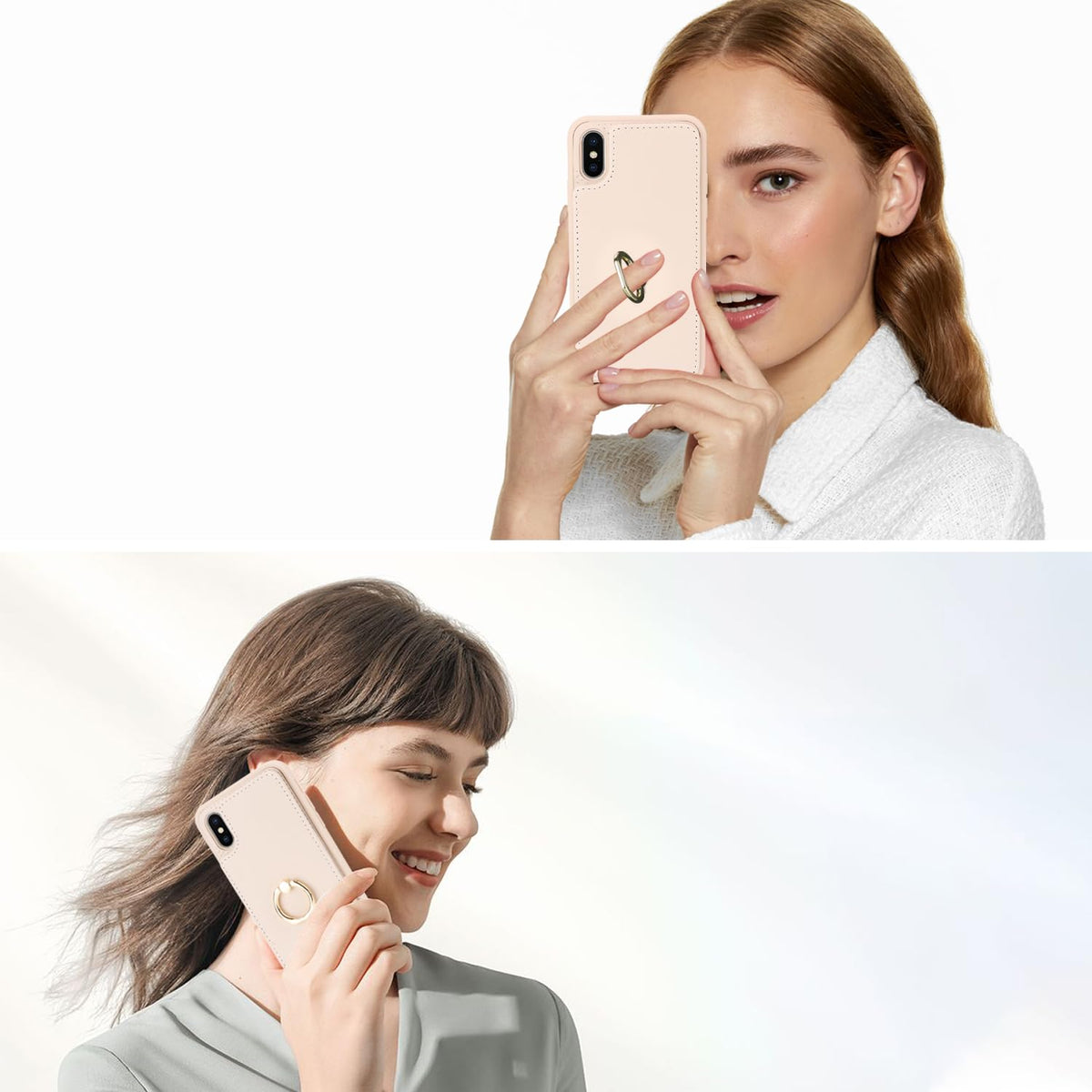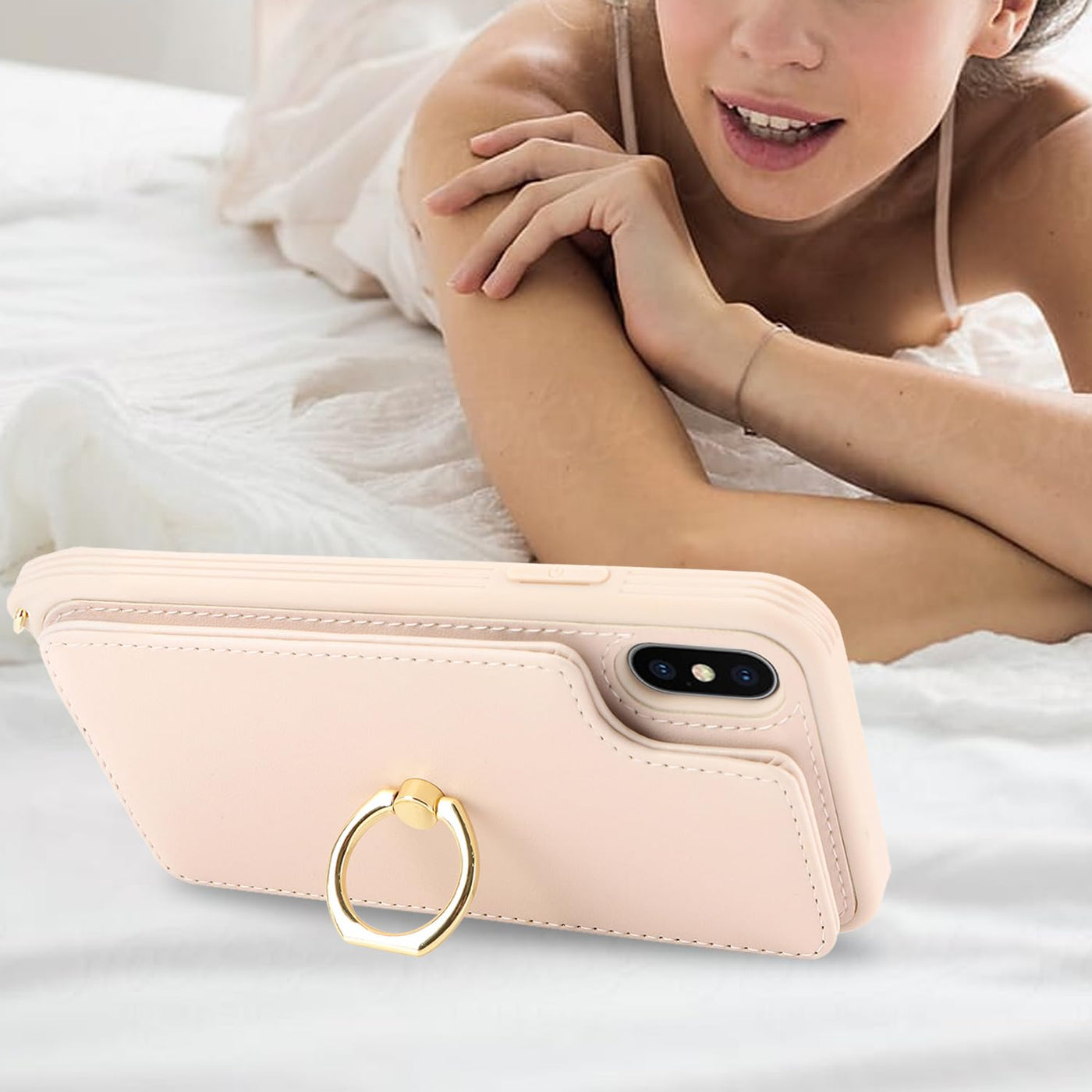 Lipvina For Iphone X/Xs Phone Case With Card Holder And Strap For Women,Crossbody Lanyard,Kickstand Ring Stand,Snap Clasp,Phone