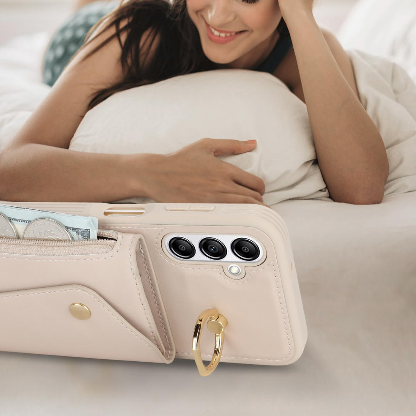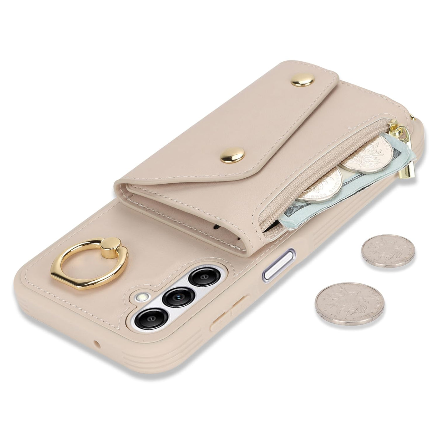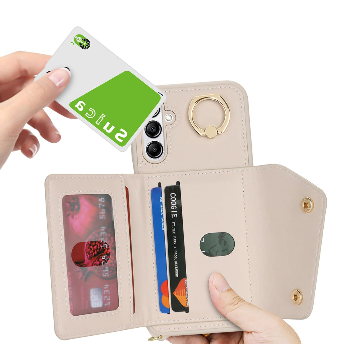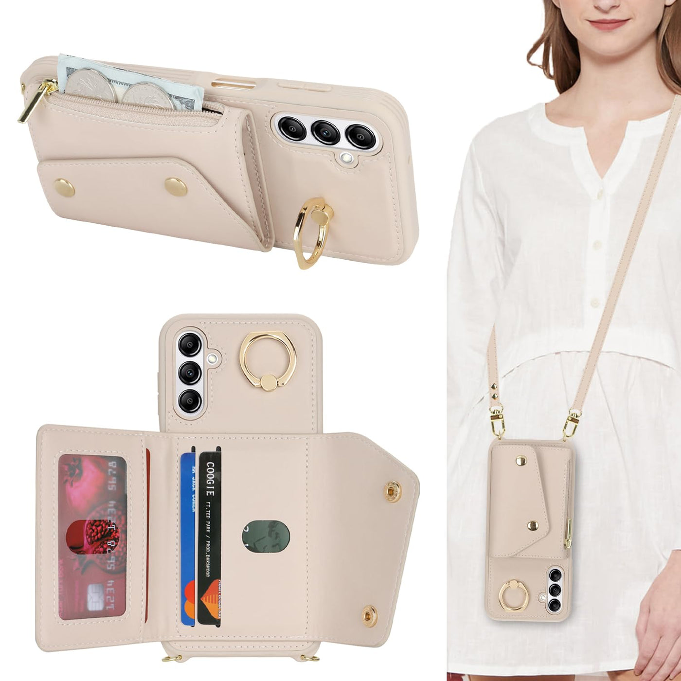 Lipvina For Samsung Galaxy A14 5G Case With Card Holder And Strap - Zipper Pocket,Crossbody Lanyard Strap,Credit Card Holder,Sta