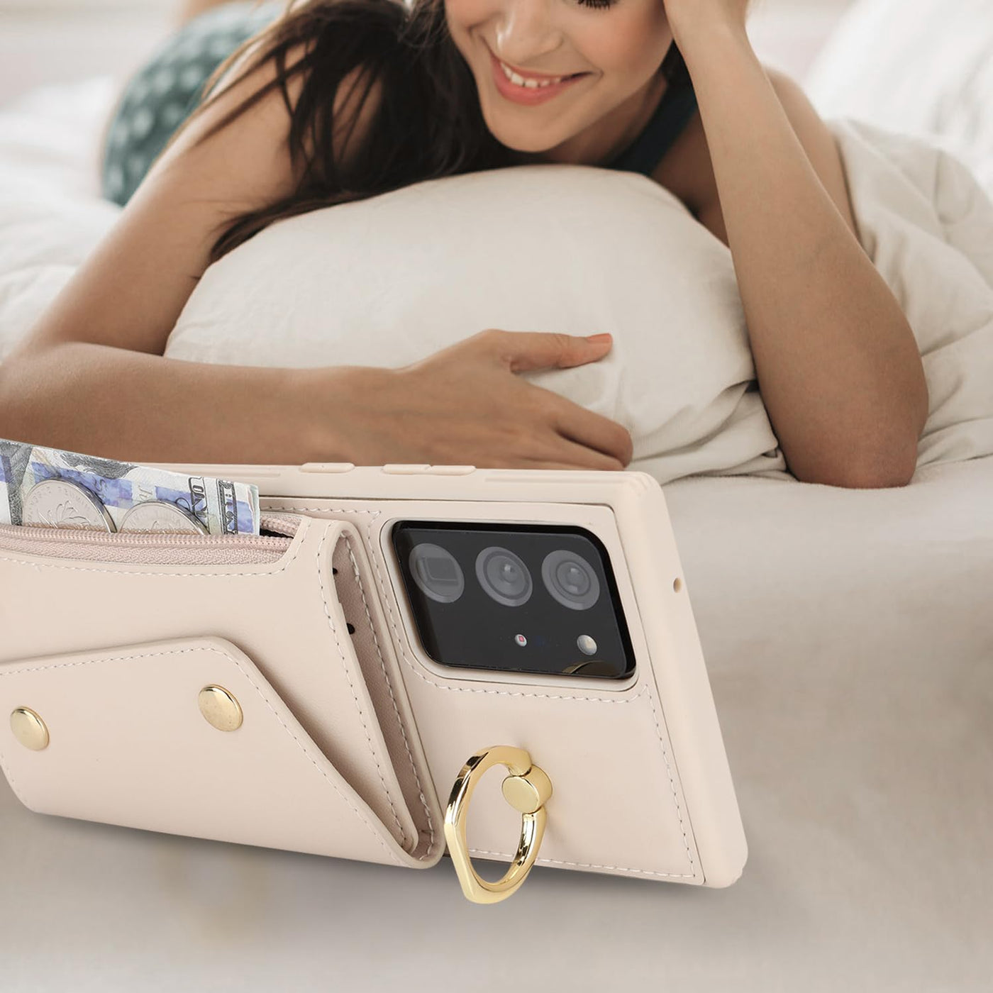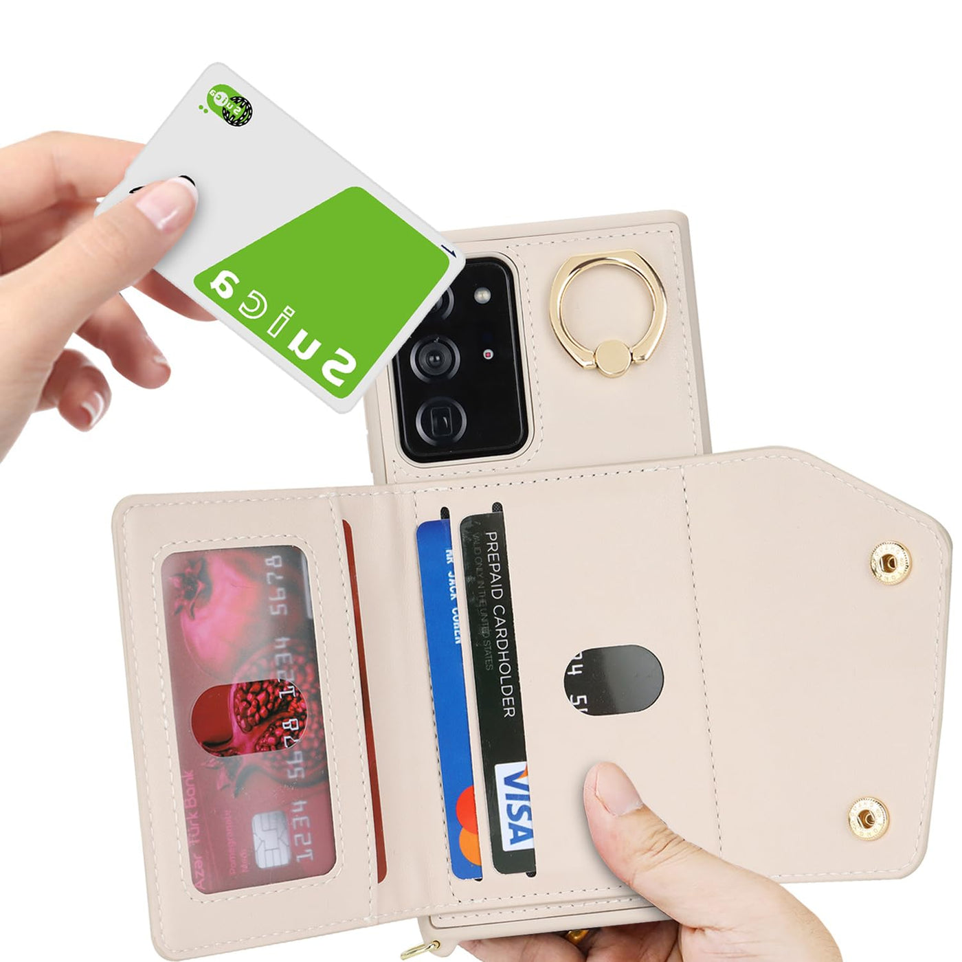 Lipvina For Samsung Galaxy Note 20 Ultra Case With Card Holder And Strap - Zipper Pocket,Crossbody Lanyard Strap,Credit Card Hol