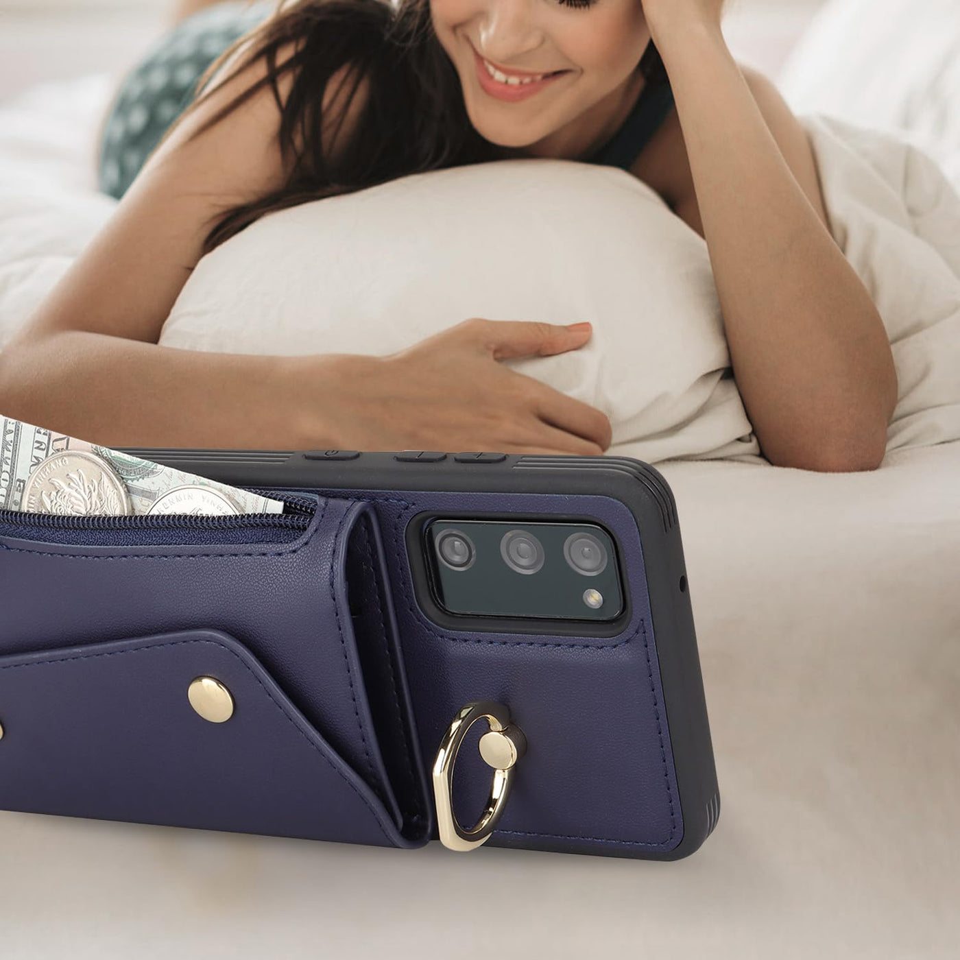 Lipvina For Samsung Galaxy S20 Fe Case With Card Holder And Strap - Zipper Pocket,Crossbody Lanyard Strap,Credit Card Holder,Sta
