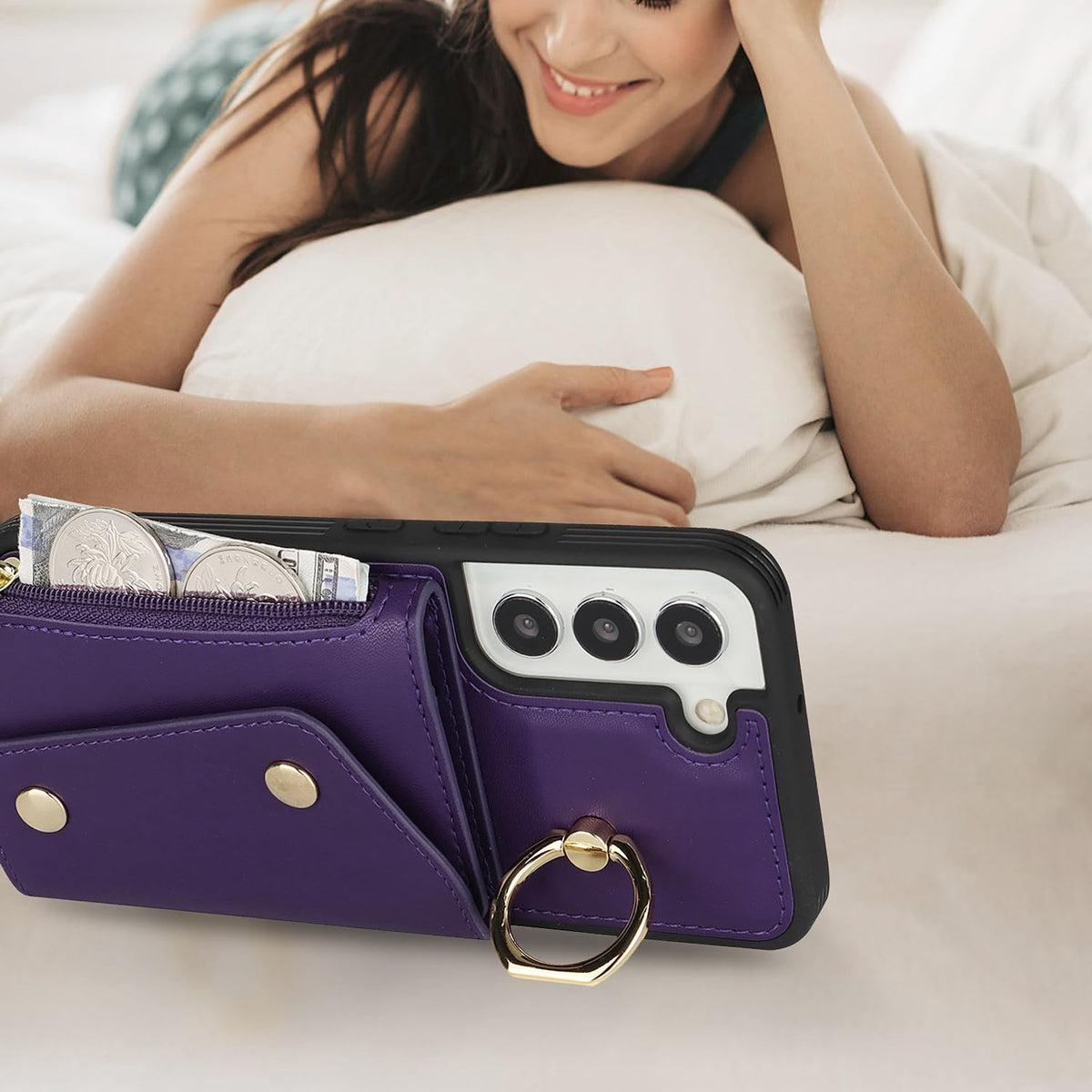 Lipvina For Samsung Galaxy S22 Case With Card Holder And Strap - Zipper Pocket,Crossbody Lanyard Strap,Credit Card Holder,Stand