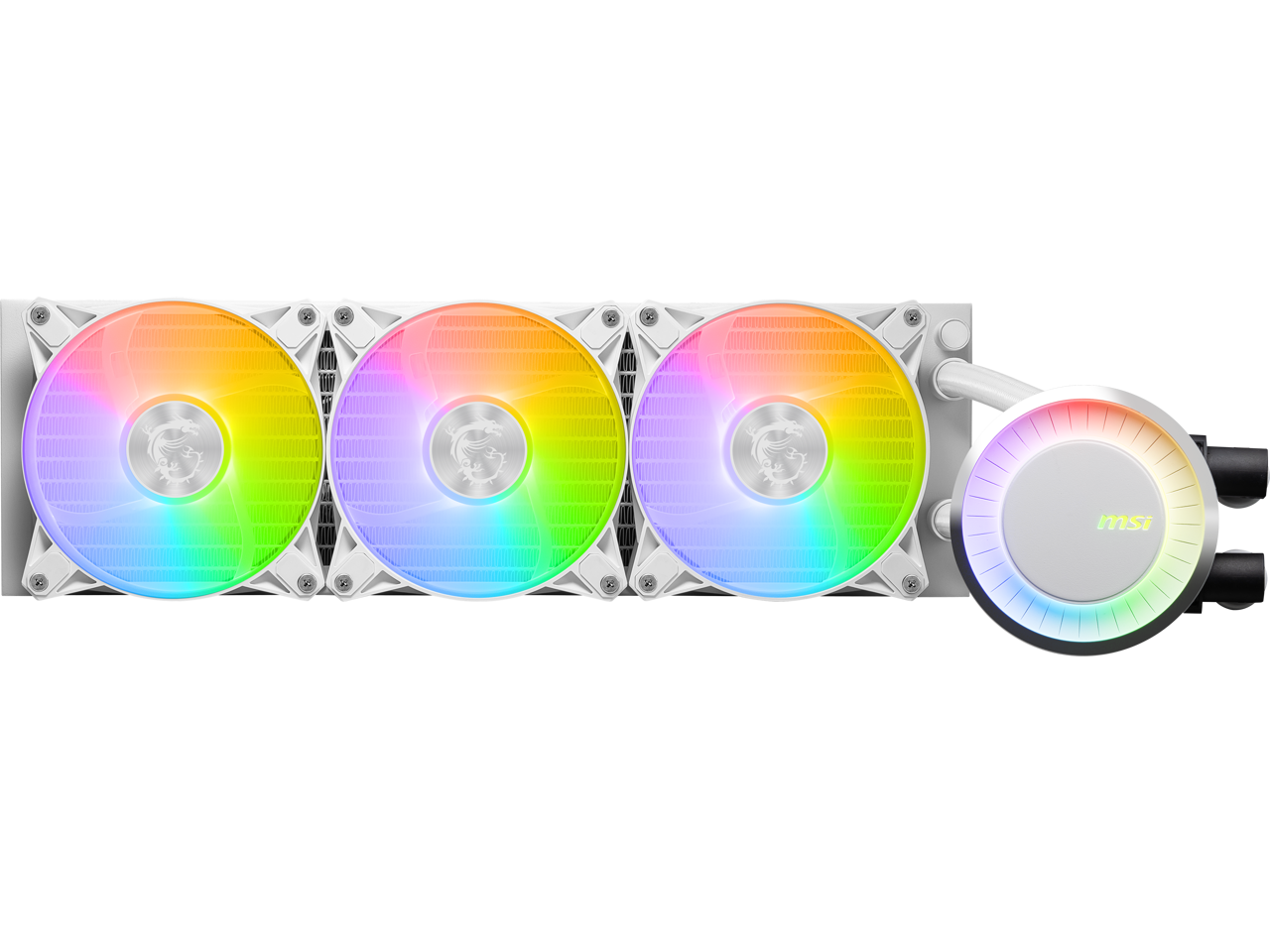 Msi Mag Coreliquid E360 White - Aio Argb Cpu Liquid Cooler - Rotating Cap Design - 360Mm Radiator - Triple 120Mm Argb Pwm Fans - Lga 1700 Ready Am5 Compatible
