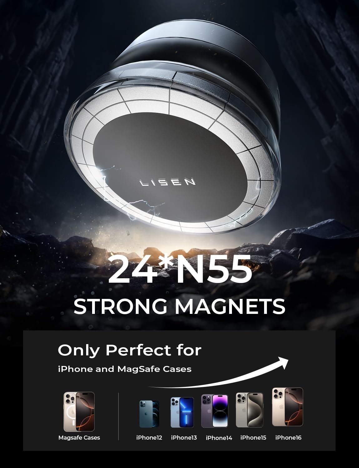 Lisen Car Phone Holder, Suction Phone Mount For Magsafe, 360 Rotation Vacuum Magnetic Phone Holder For Content Creator Gym (Carb