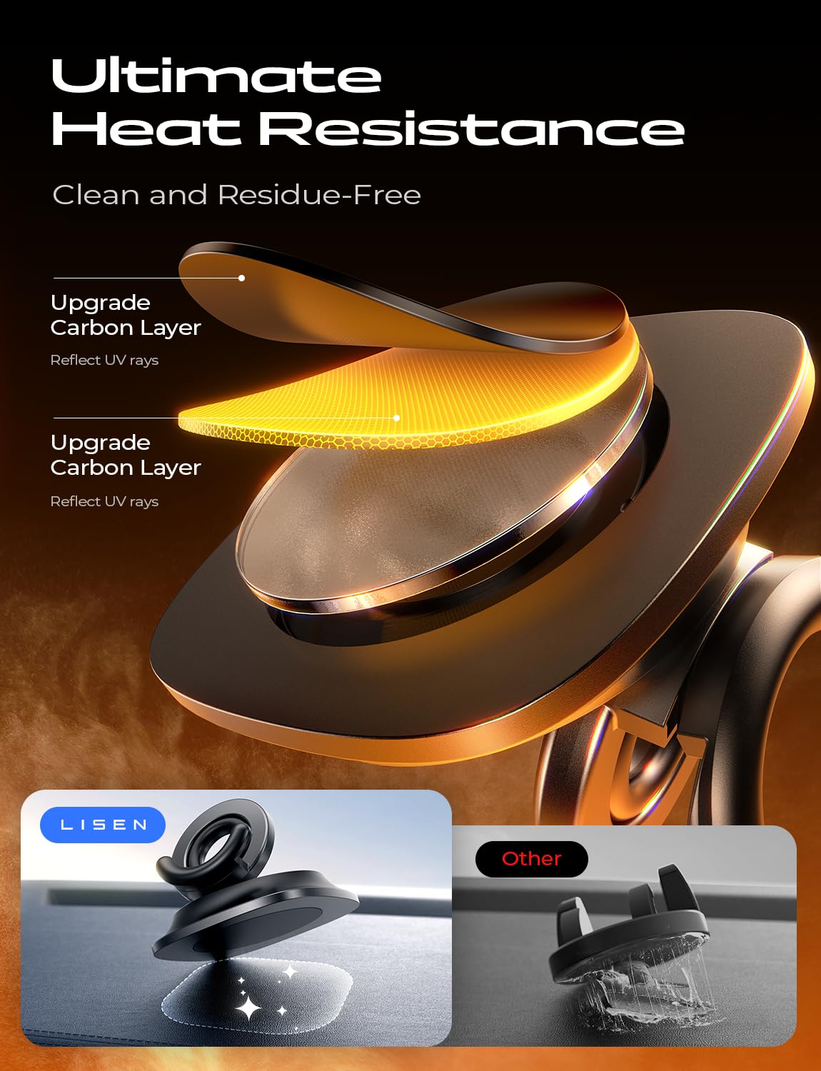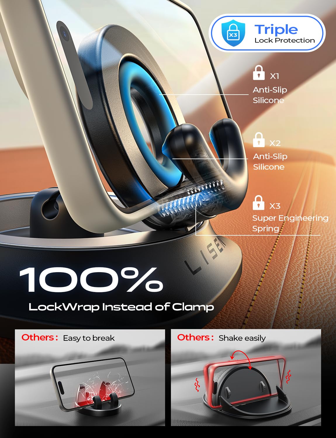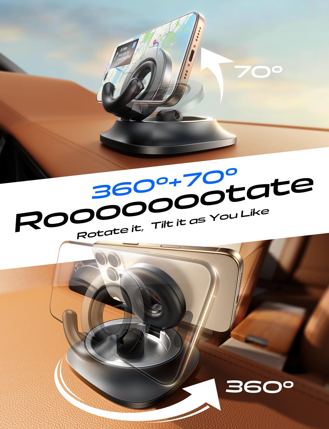 Lisen Dashboard Cell Phone Holder For Car [360+70Rotate Base] Dash Phone Mount Holder For Car Phone Holder Mount Stand Non Slip