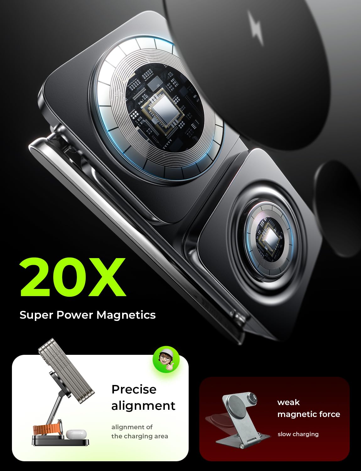 Lisen Foldable Charger 3 In 1 For Apple Magsafe Charger Stand, Wireless Charger Iphone And Watch Charging Station For Multiple D