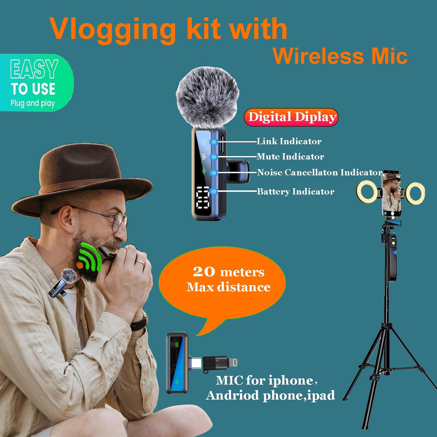 1. ** Auto Face Tracking Tripod With Smart Gesture Control ** Perfect For Vloggers And Live Streamers. Advanced Ai Locks Onto Your Face During Sports, Lectures, Or Cooking Streams-Automatically Keeping You Centered. Control It Intuitively: *Show Ok To Start Tracking* | Palm To Stop*. No Apps Needed. *Ideal Plug-And-Play Simplicity For Iphone Creators.* 2. ** Sturdy Extendable Tripod Base ** Ditch Flimsy Selfie Sticks! Features A 2-Section Aluminum Base (10.6-19.6) For Shake-Free Stability On Desks, Uneven Ground, Or Handheld. *Never Risk Drops-Indoor/Outdoor Ready.* 3. ** Smart Wireless Mic With Real-Time Status Display ** Crystal-Clear Audio Up To 65Ft (20M) + Active Noise Reduction. *Monitor Battery, Connection, Mute, And Noise-Cancel Status At A Glance.* Ultimate Plug-And-Play Control.4. ** Tri-Color Fill Light ** Master Low-Light Shooting. Adjustable White/Warm/Natural Leds. *Short-Press: Switch Temps* | *Long-Press: Dim*. Game-Changer For Night Vlogs And Dim Spaces. 5. ** Ultimate Portable Content Creator Kit ** Collapses From 70.9 To 15.7 + Includes Carry Pouch Remote & Universal 1/4 Mount ( Phones / Gopros / Cameras ). Pro Features Meet Travel-Ready Design-The Ultimate All-In-One Solution.