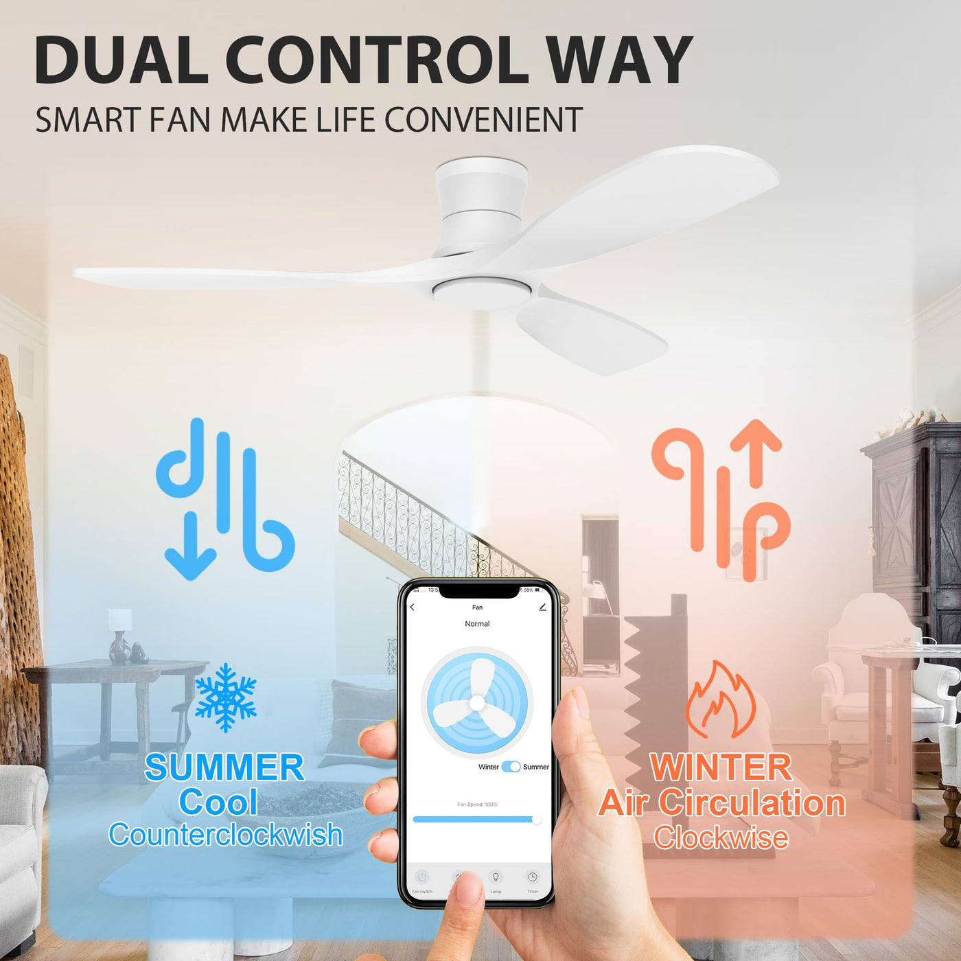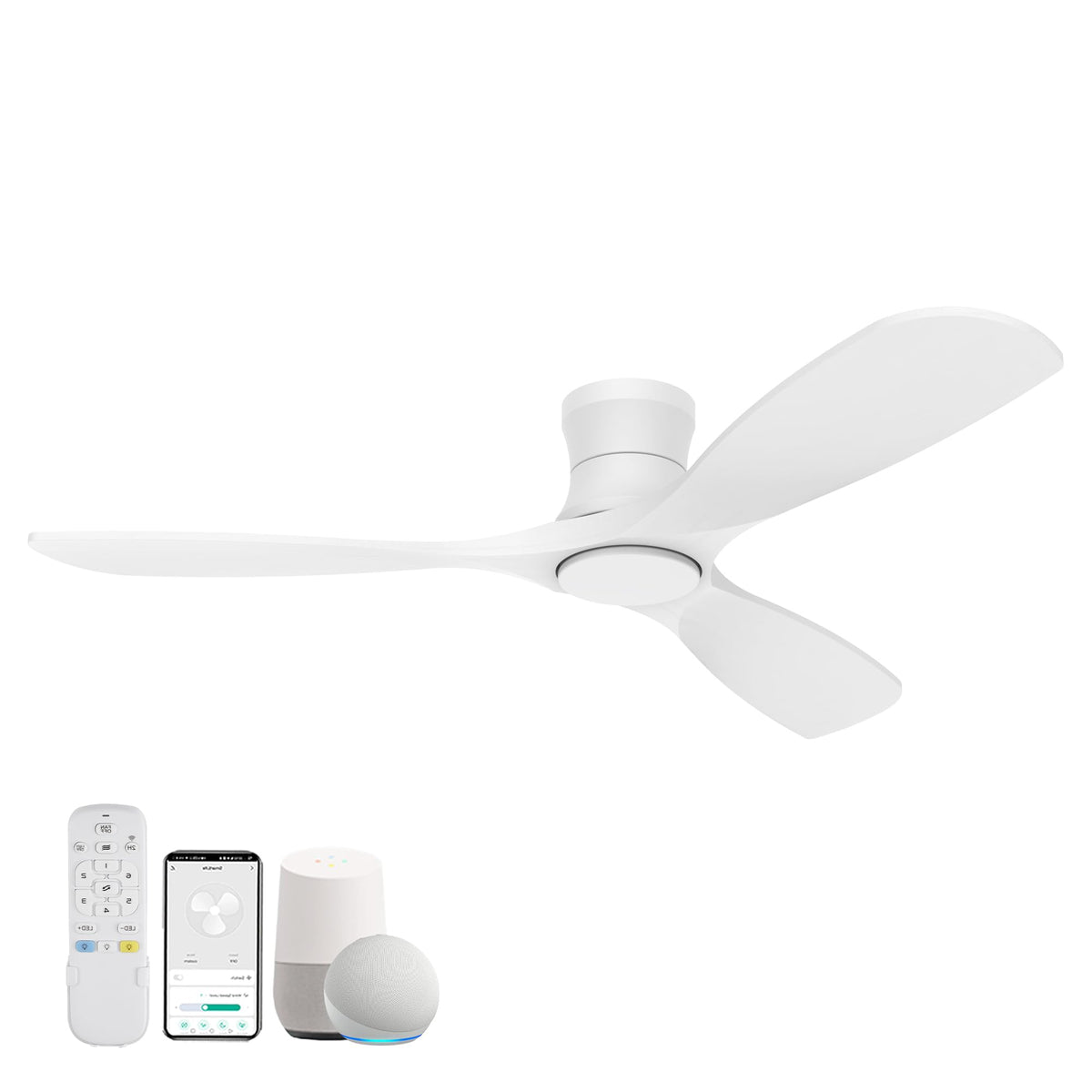 Livory 52 Wood Smart Flush Mount Ceiling Fans With Lights And Remote,Quiet Dc Motor,Outdoor Indoor Ultra Low Profile Ceiling