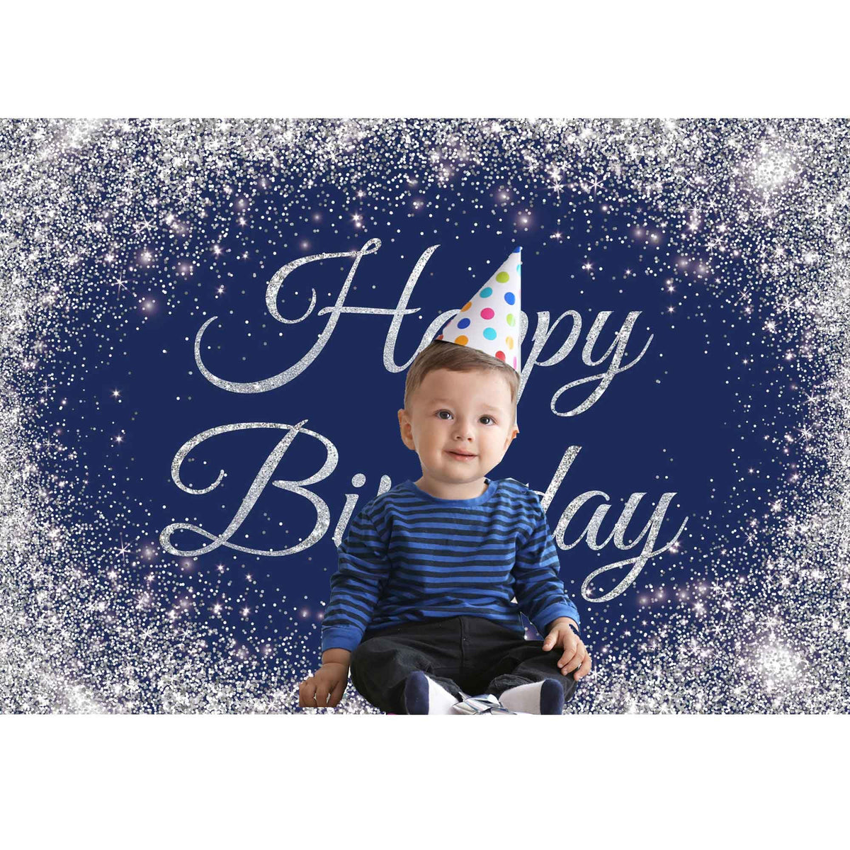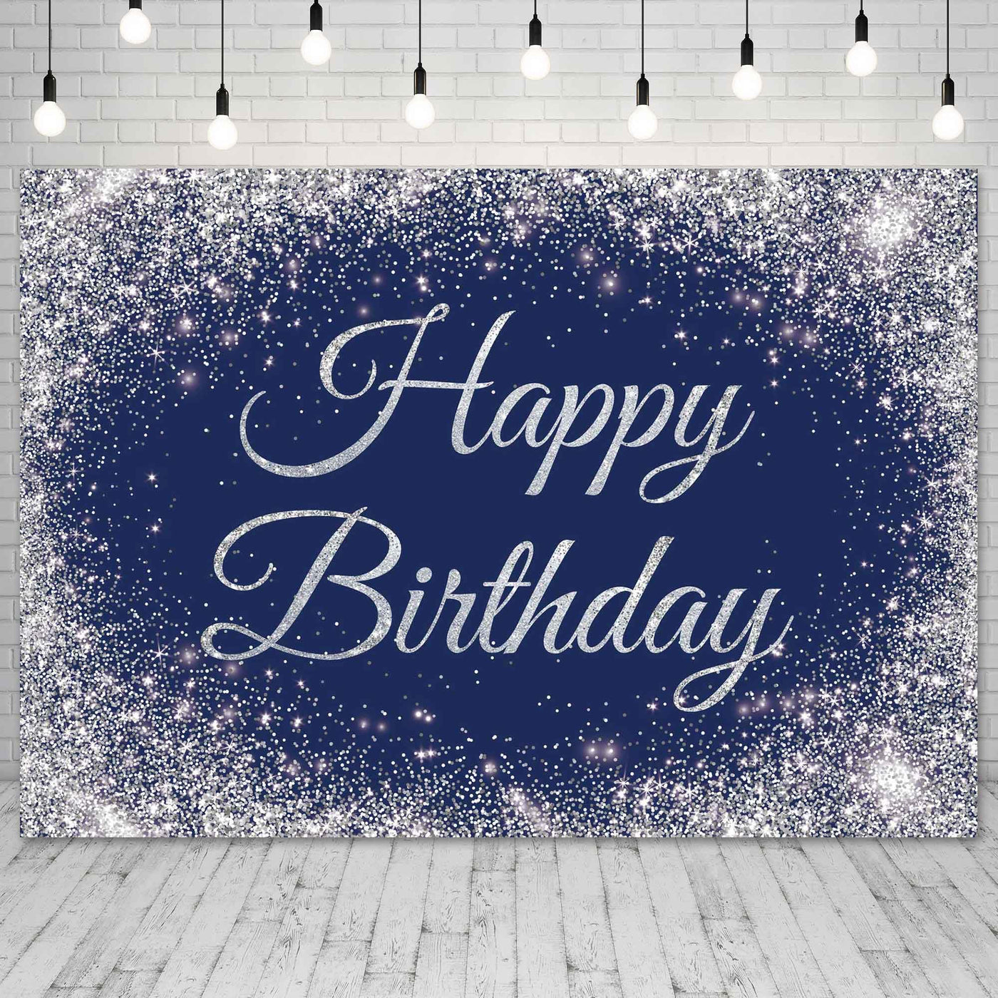 Livucee 10X8Ft Navy Blue And Silver Happy Birthday Banner Backdrop Glitter Spots Decorations Photography Background Party Wall S