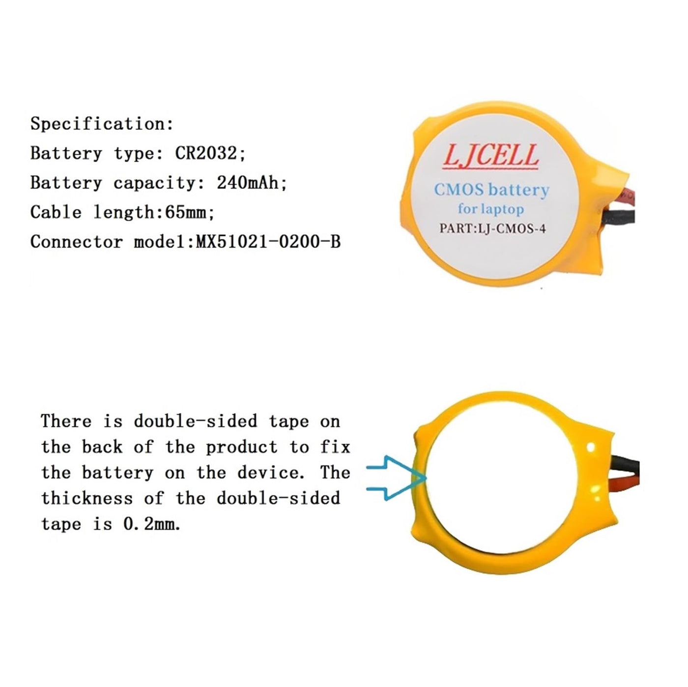 Q: How long does the LJCELL CMOS Battery last?A: This battery has an impressive lifespan, capable of maintaining your laptop's time and date settings for up to 8 years. This longevity reduces the need for frequent replacements, saving you time and money in the long run.