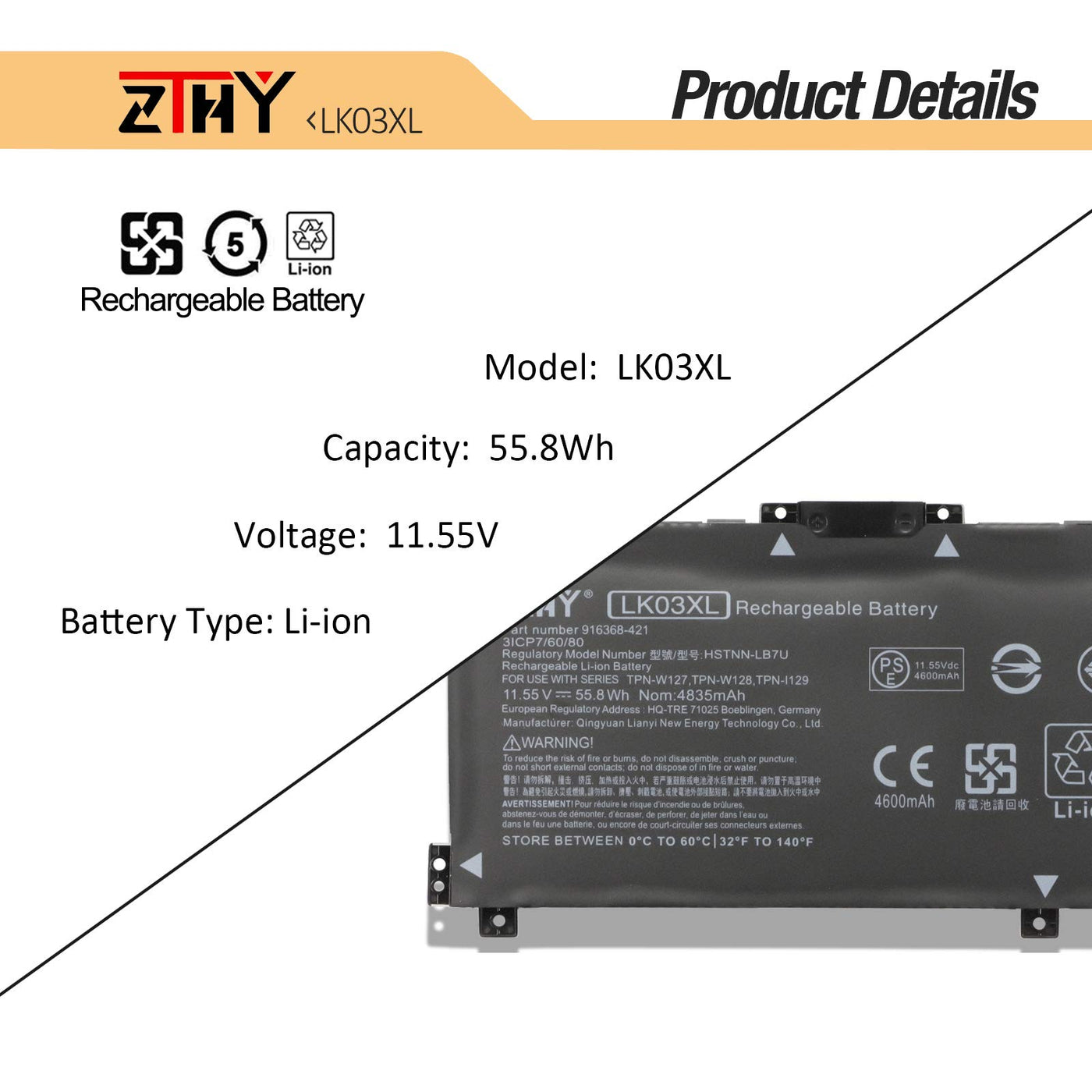 Specifications: Voltage: 11.55V Capacity: 55.8Wh Certificate: Ce,Rohs,Fcc Condition: 100% New From Manufacturer, Grade A Cell Compatible With Part Numbers: Lk03Xl Hstnn-Ub71 Tpn-W128 L09280-855 L09281-855 Tpn-I129 Tpn-W127 916814-855 Lk03055Xl-Pr 916368-421 916368-541 L09911-421 916368-421 Lk03055Xl Lk03048Xl Hstnn-Lb7U L09911-141 Hstnn-Ub7I Hstnn-1B8N L09049-541 Fit Laptop Machine Models (Please Use Ctrl+F To Search For Your Laptop Model): Hp Envy 17-Ae 17M-Ae Series All Models 17-Ae001Nb 17-Ae001Nf 17-Ae006Ng 17-Ae107Nb 17M-Ae011Dx 17M-Ae0Xx Hp Envy X360 15-Bp 15-Bq 15M-Bp 15M-Cp Series All Models 15-Bp101Nia 15-Bp102Ng 15-Bp109Ur 15-Bq001Na 15-Bp107Tx 15-Bp104Tx 15-Bp004Na 15-Bp100Tx 15M-Bp011Dx 15-Bp000 15-Bp002Tx 15-Bp005Tx 15-Bp195Nia 15-Bp105Tx 15-Bp101Tx 15M-Bp1Xx 15M-Bp012Dx 15-Bp003Tx 15-Bp004Tx 15-Bp103Tx 15-Bp106Tx 15-Bp102Tx 15M-Bp000 15-Bp006Tx 15-Bp001Tx Not All Models Are Listed Here,Please Check The Part Number Of Your Original Battery To Confirm Or Contact With Us Before Order. This Battery Is Compatible With Hp Envy 17-Ae 17M-Ae Series And Hp Envy X360 15-Bp 15-Bq 15M-Bp 15M-Cp All Models