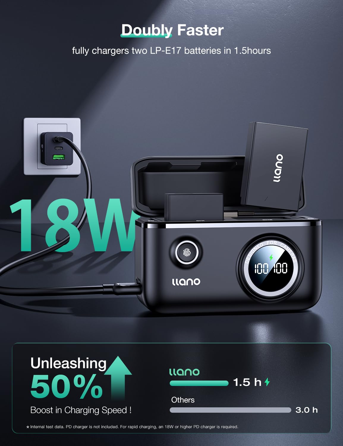 Llano 2 Pack Lp E17 Batteries And 18W Fast Dual Usb Charger For Canon Eos R100 R50 Rp R10 R8, Rebel T8I, T7I, T6I, T6S, Sl2, Sl3