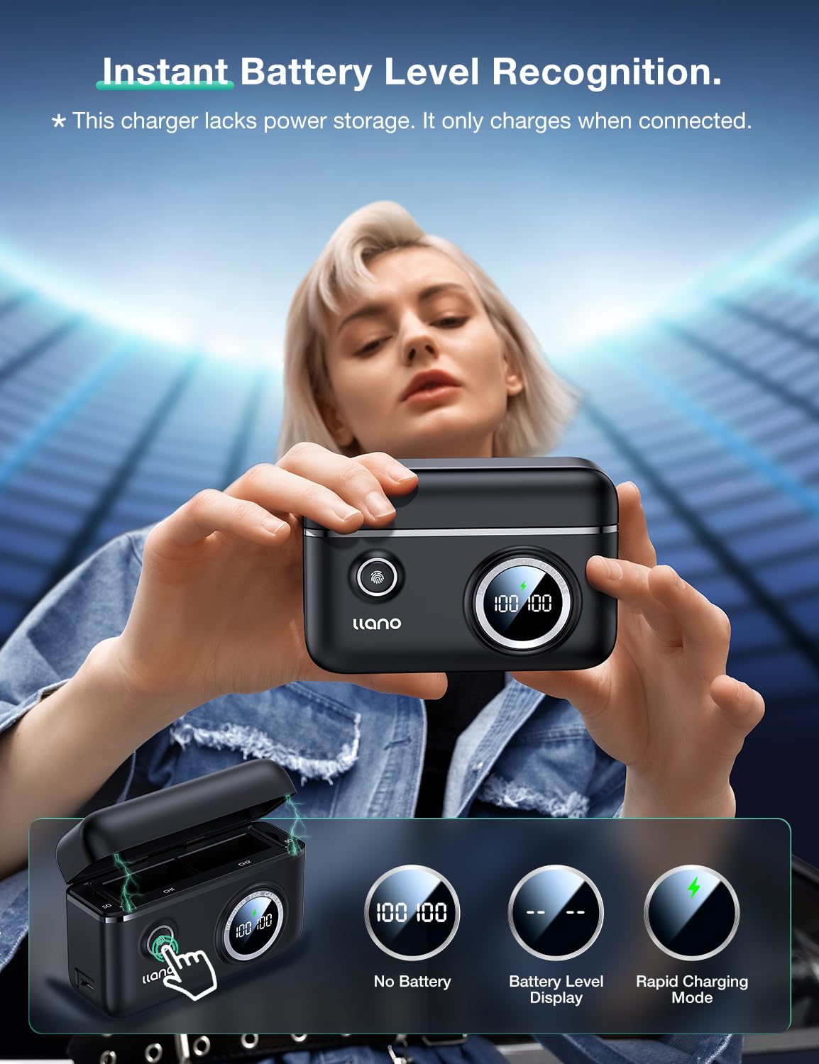 Q: How can I monitor the charging progress of my batteries?A: The llano charger is equipped with a smart digital display featuring an intuitive LED readout. This allows you to keep track of the charging progress for each NP-W126S battery in real-time, ensuring that you are always informed about your battery status while focusing on your photography or videography.