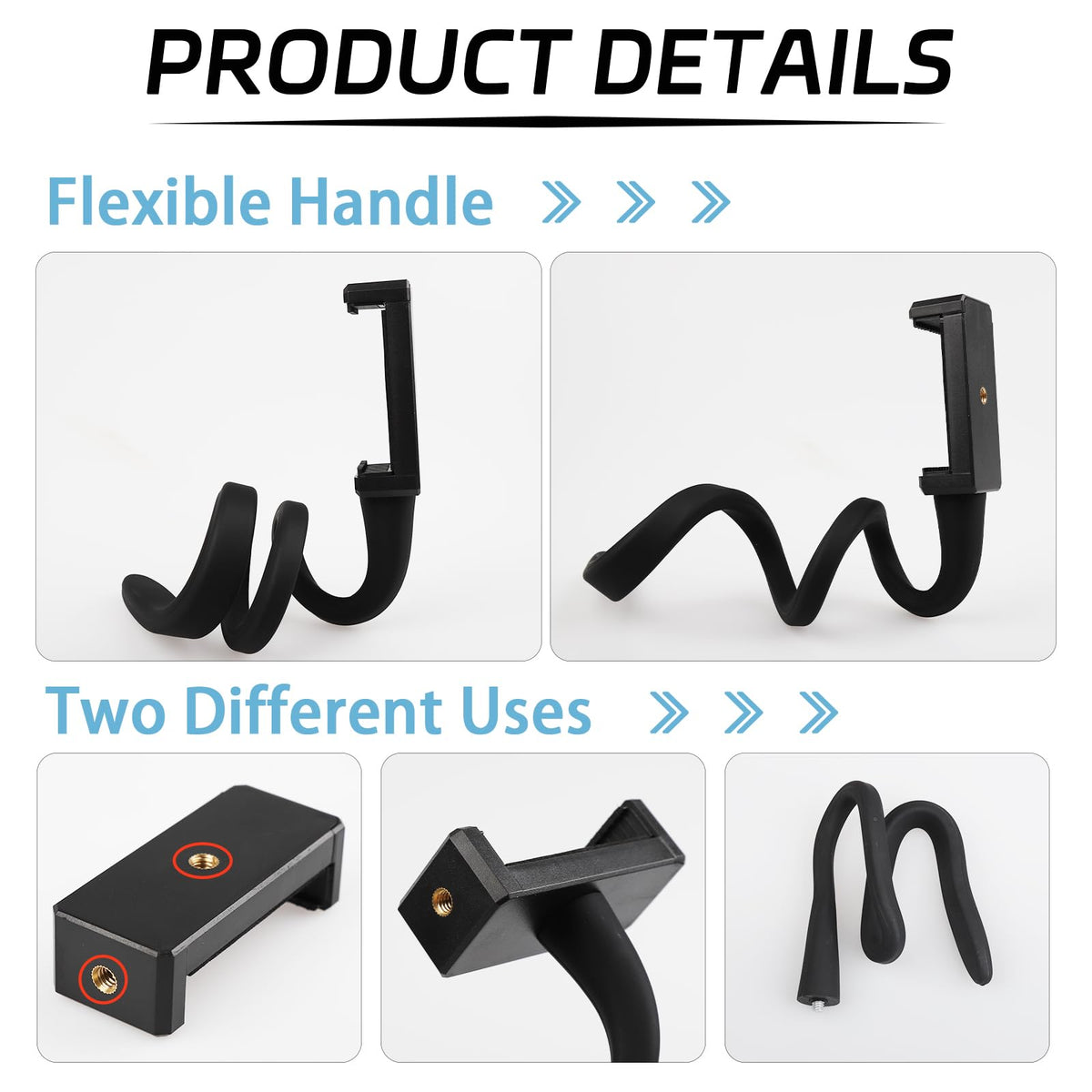 Features: The Silicone Rod Can Be Wrapped, Soft And Durable, Bent At Will, And Easy To Carry. The Spring Clamp Of The Phone Holder For Stroller Expands From 2.56 Inches To 4.02 Inches,Which Fits Most Smartphone Devices. It Can Be Attached And Reattached Vertically Or Horizontally To Most Bars, Handles Or Rails, Keeping Your Smartphone In Place Specification: Product Name: Phone Holder For Bike Material: Quality Plastic And Silicone Color: Black Suitable Scenarios :Microphone Stands, Strollers, Treadmills, Bicycle Handlebars, Railings, Shopping Carts, And Beds. Package Includes: 1 X Stroller Phone Holder.