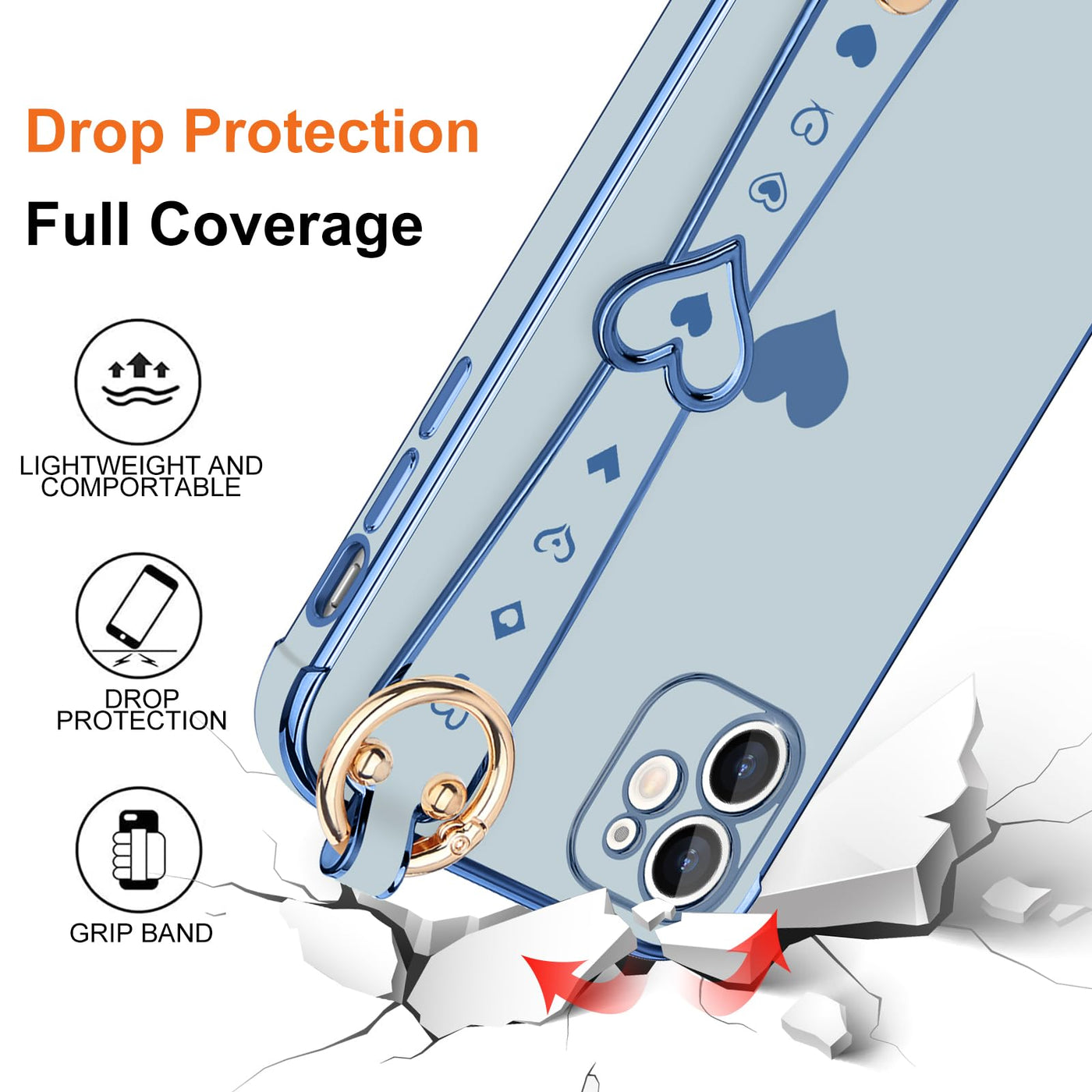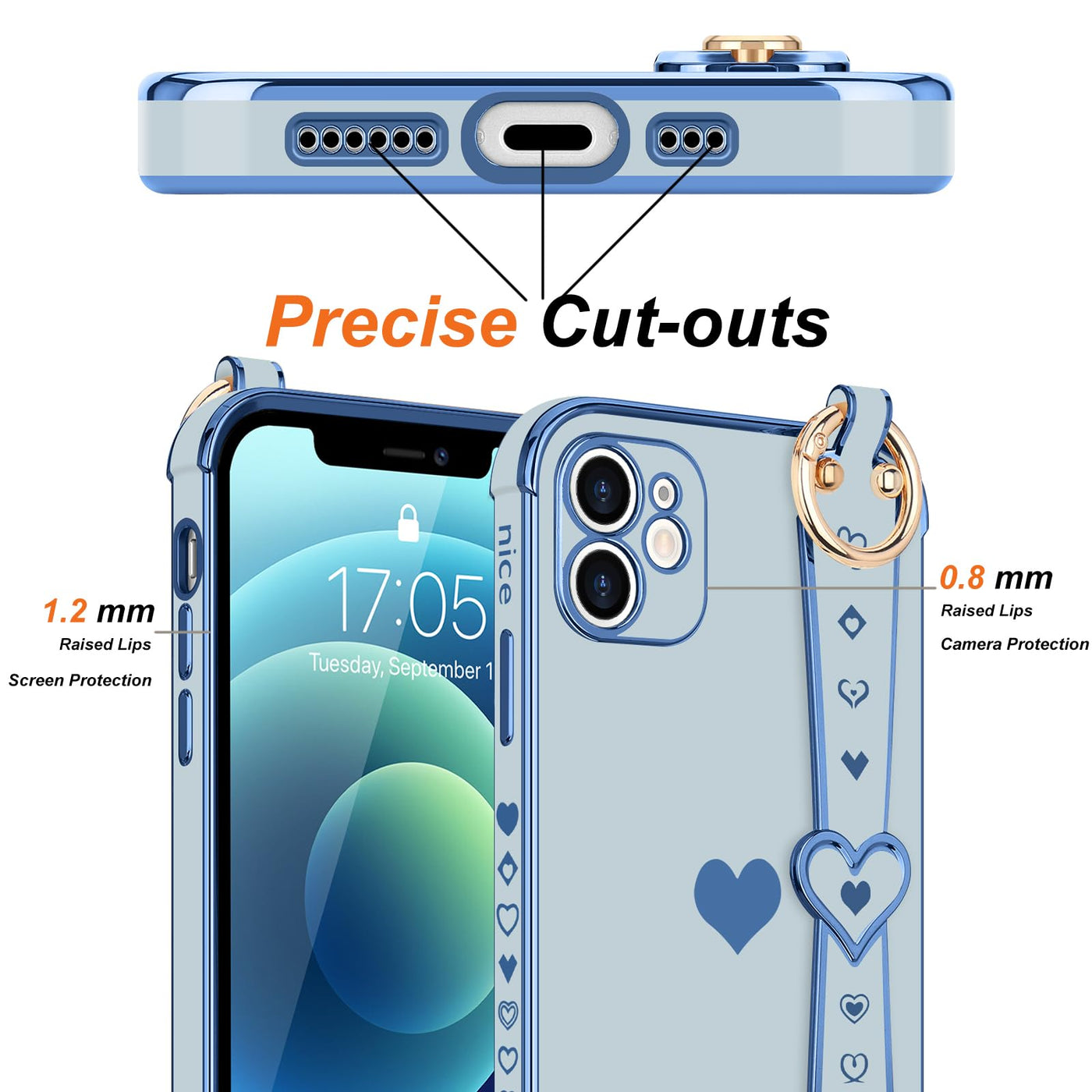 Llz.Coque For Iphone 11 Case Cute Love Heart Plating Strap Phone Cover For Women Girls Bling Soft Silicone Camera Lens Protectio