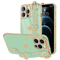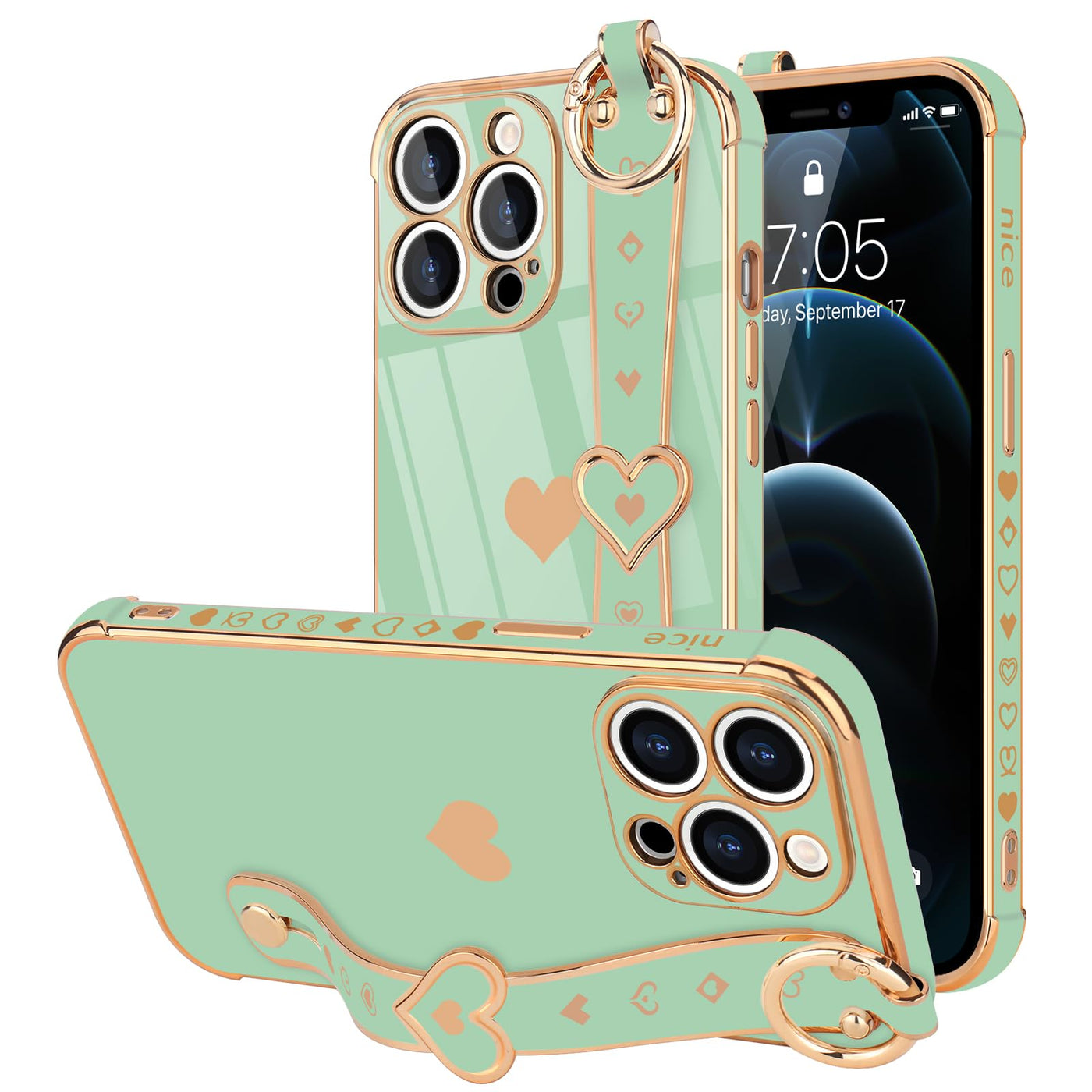 Llz.Coque For Iphone 12 Pro Case Cute Love Heart Plating Strap Phone Cover For Women Girls Bling Soft Silicone Camera Lens Prote