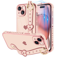 Llz.Coque For Iphone 15 Plus Case With Strap For Women Girls [2 Screen Protectors], Cute Love Hearts Design, Wristband Kicksta