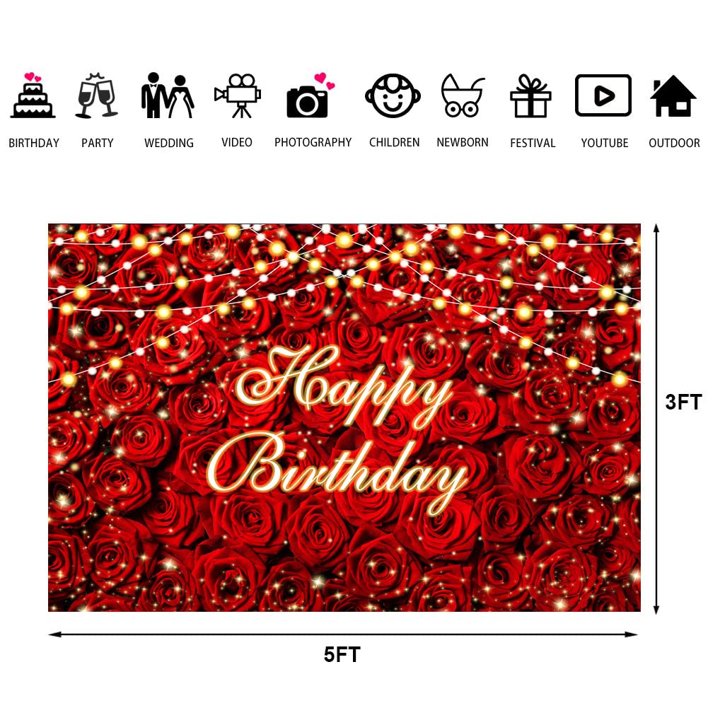 Lofaris Red Rose Flower Happy Birthday Backdrop Rose Floral Wall Adults Women Birthday Background Sweet 16 Happy 30Th 40Th 50Th