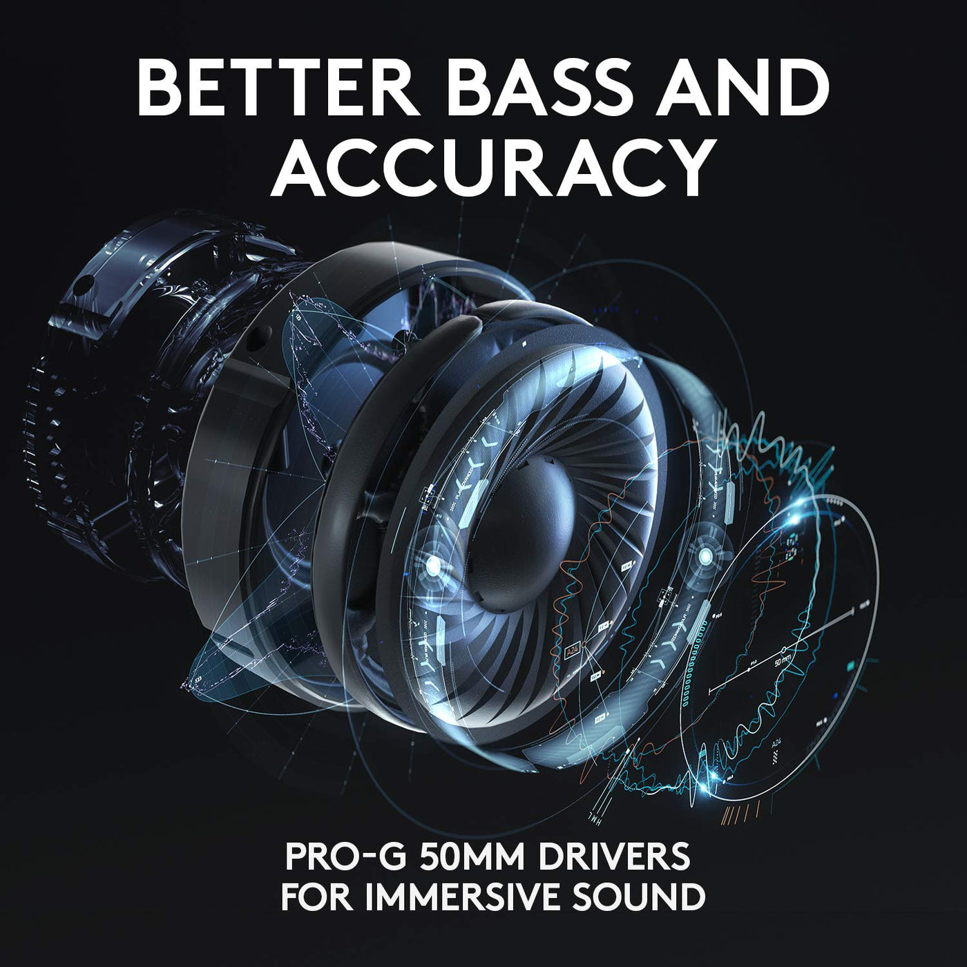 Q: What is the sound quality like on the Logitech G635 headset?A: The Logitech G635 features large 50mm Pro-G drivers that deliver high-quality audio, allowing you to hear detailed soundscapes in games. The advanced DTS Headphone: X 2.0 surround sound technology enhances your immersive experience by providing precise positional audio, helping you detect enemies and environmental cues.