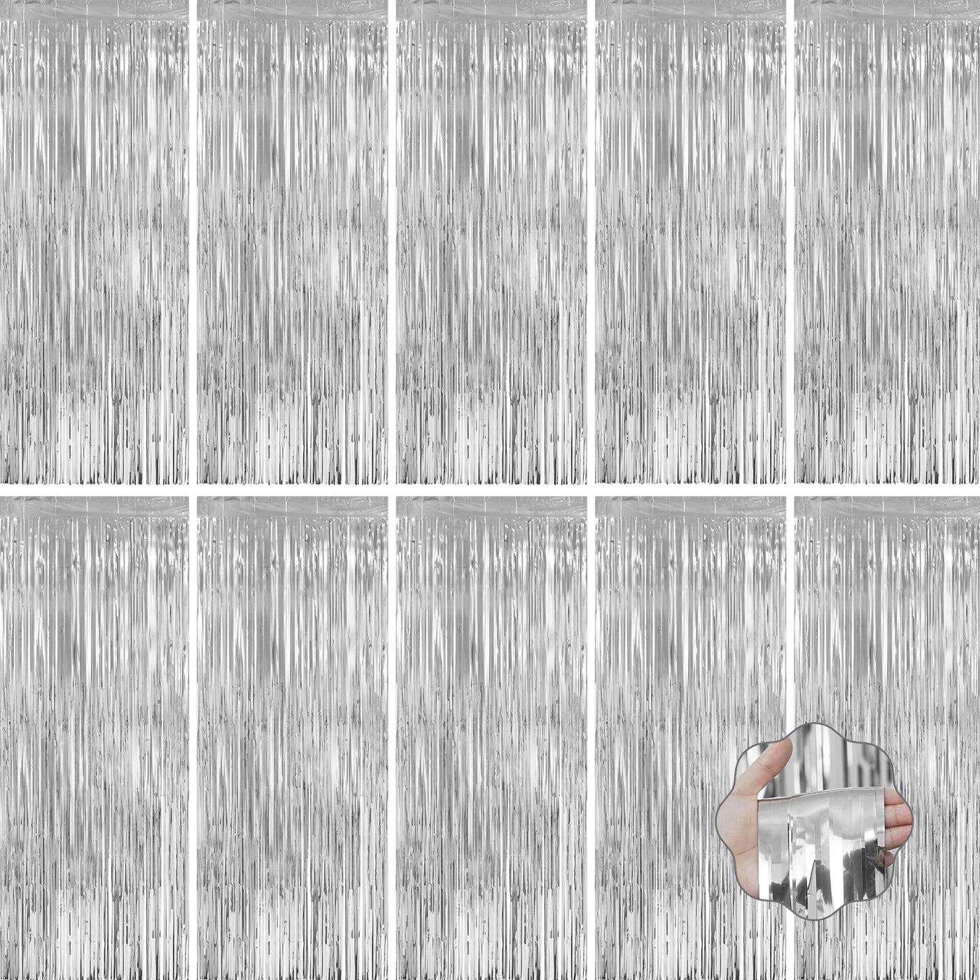 Lolstar 10 Pack Silver Party Decorations 3.3X6.6 Ft Silver Foil Fringe Curtains Tinsel Backdrop Photo Booth Prop Streamer For En