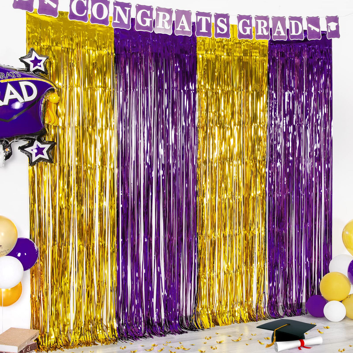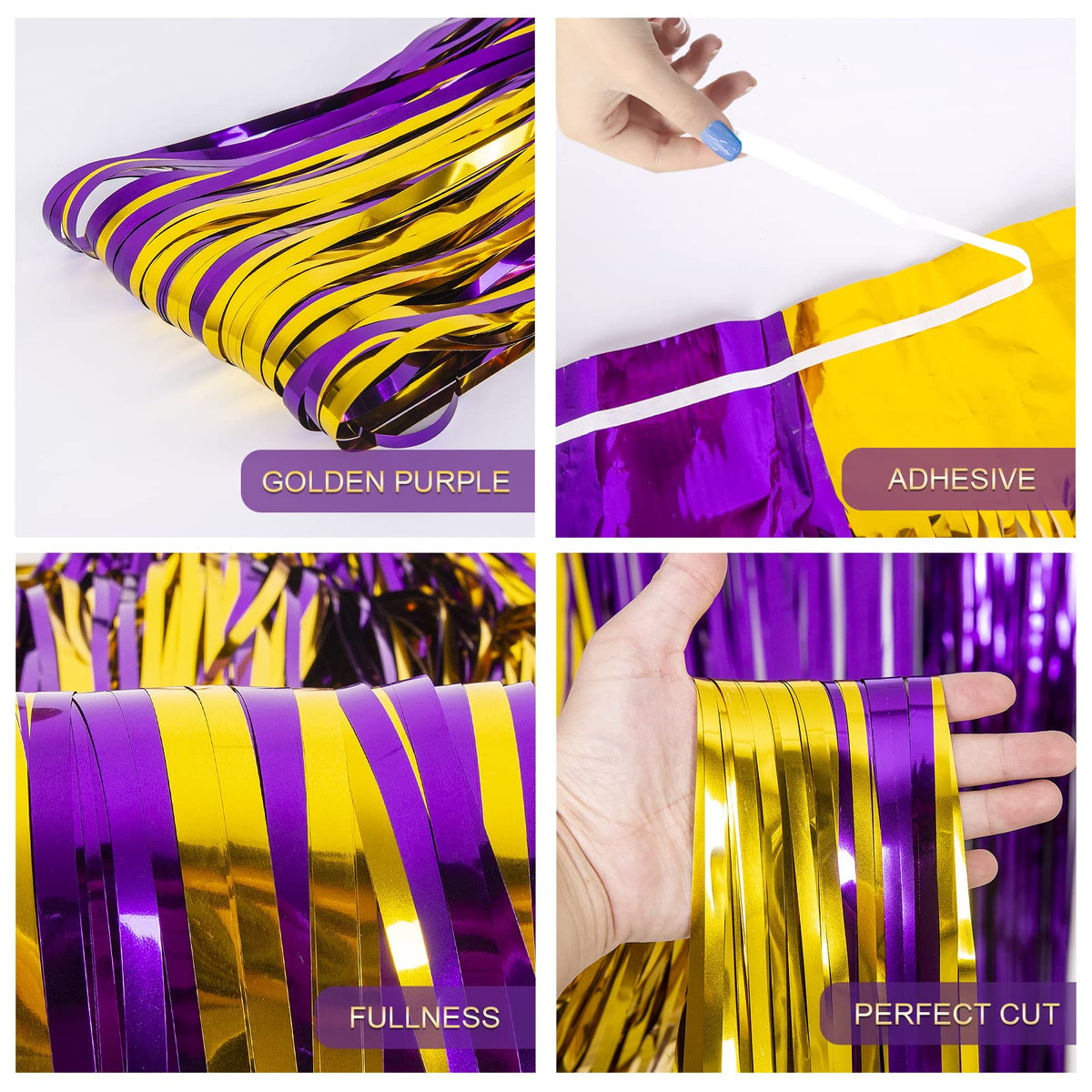 Product : Birthday Party Photo Booth Backdrop, Graduation Party Foil Fringe Curtain. Color : Purple And Gold. Size : 3.3 X 6.6 Ft Each (Width X Drop). Applications: Live Streamer Backdrop, Broadcast Streamer Backdrop, 2024 Graduation Party Photo Backdrop, Stage Backdrop, Class Backdrop, Bar Backdrop Decoration Etc.
