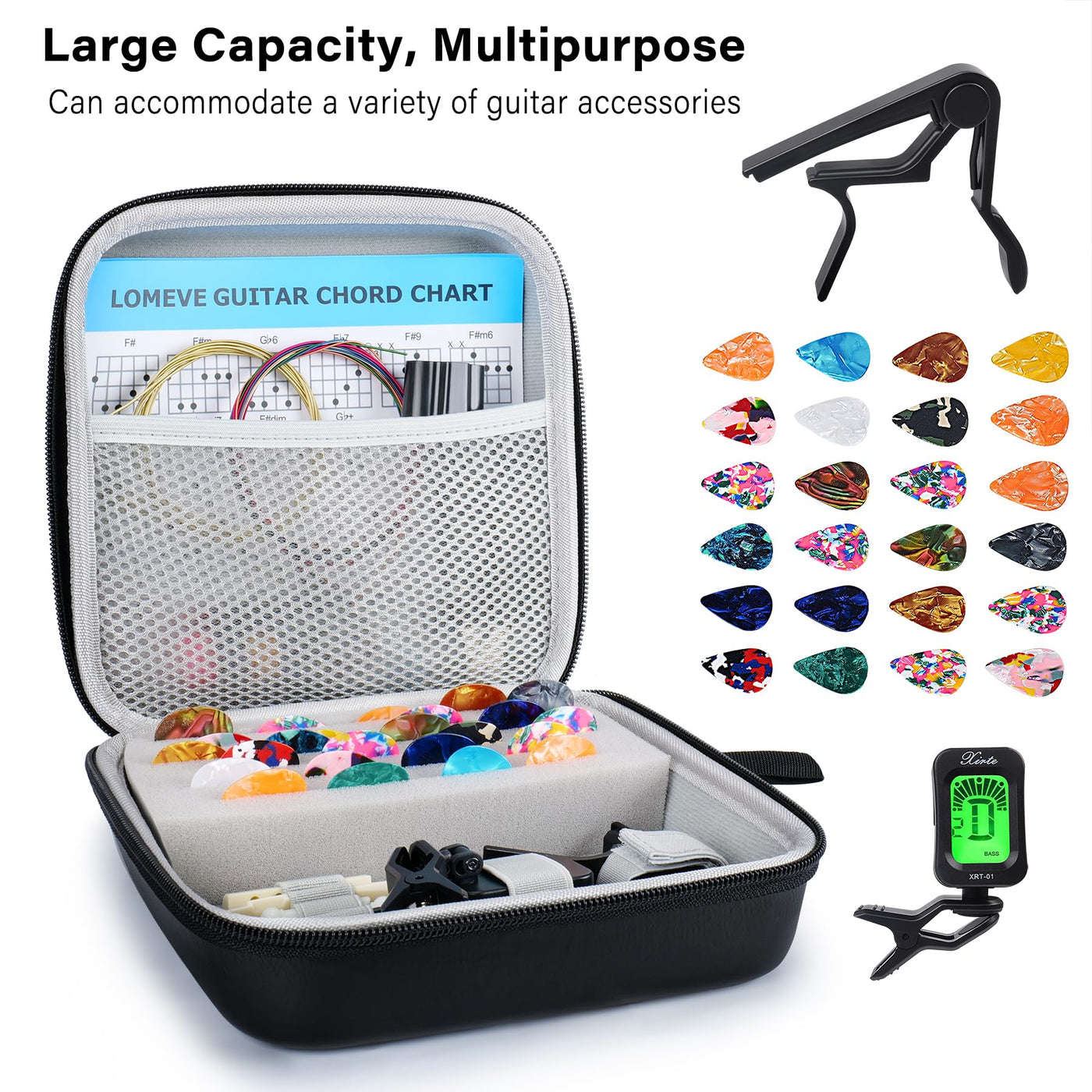 Lomeve 85Pcs Guitar Accessories Kit Holder Case Include Acoustic Strings, Tuner, Capo, 3 In 1 Restring Tool, Picks, Pick Holder,