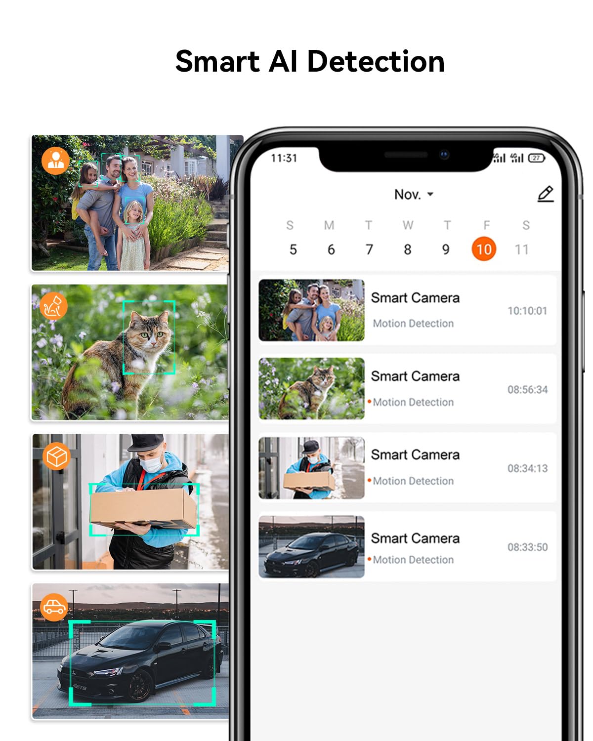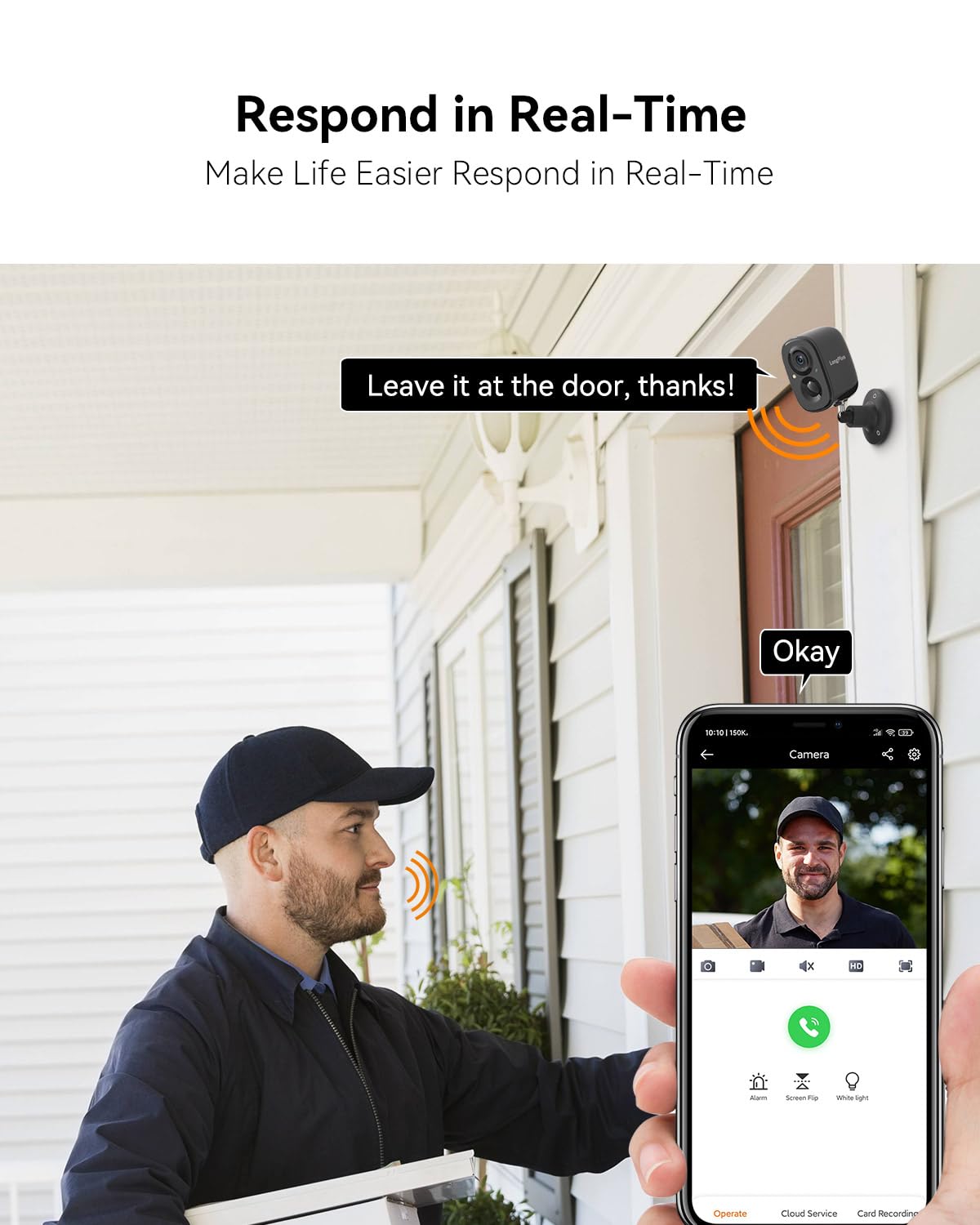 Longplus Wireless Outdoor Security Camera, Battery Powered Wireless Security Camera, Wireless Wifi Camera With Ai Detection, Col
